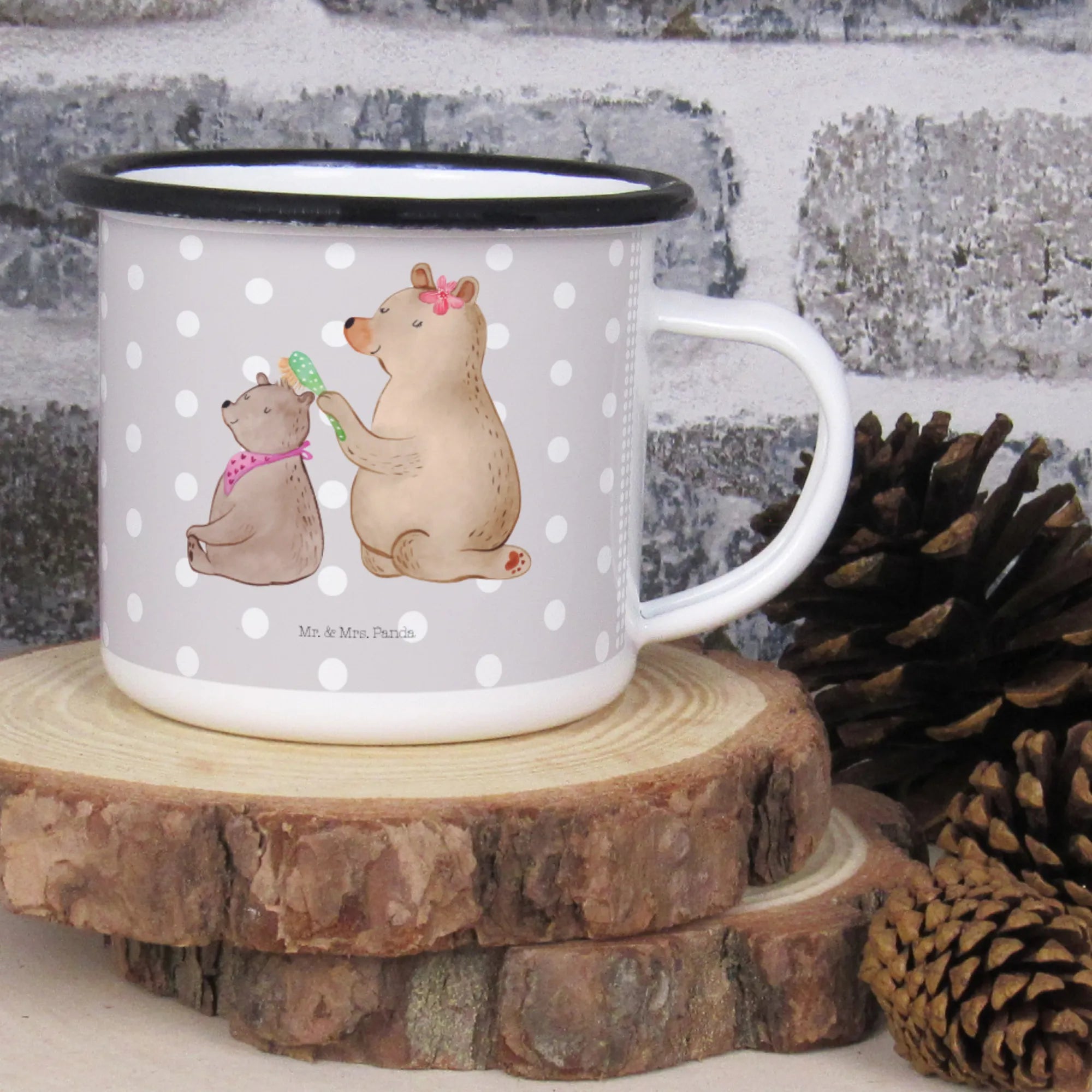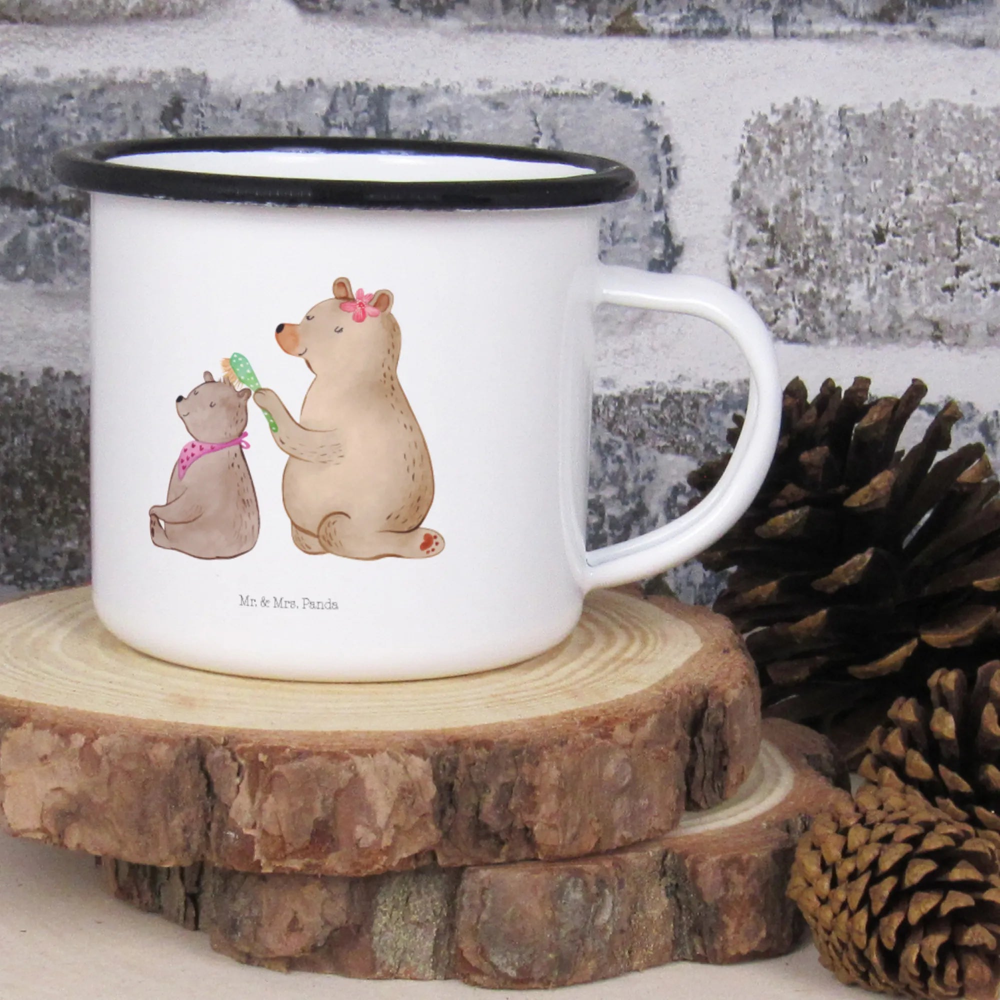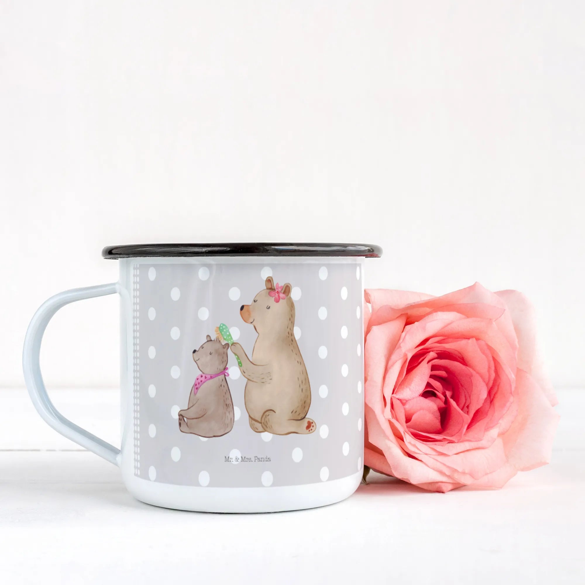 Die XL Emaille Tasse mit dem süßen Motiv "Bär mit Kind" von Mr. & Mrs. Panda ist das perfekte Geschenk für alle Mamas, die Liebe und Fürsorge hoch schätzen.