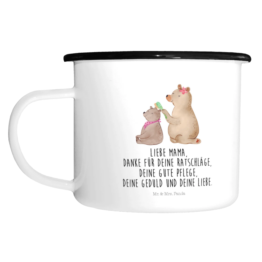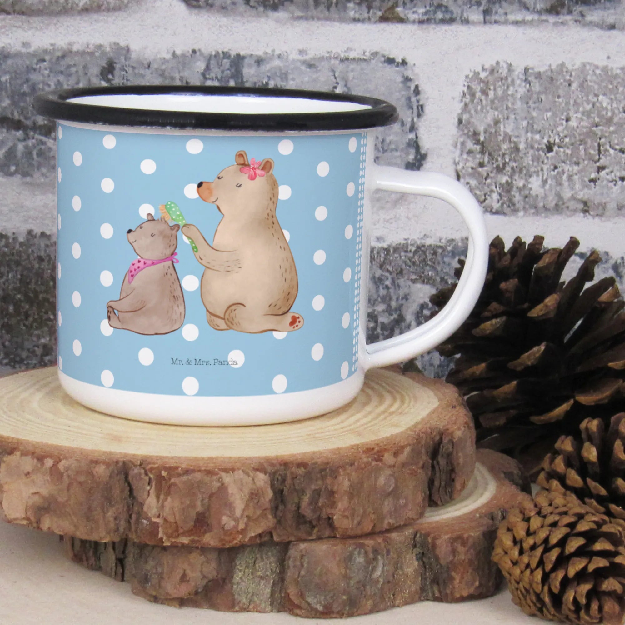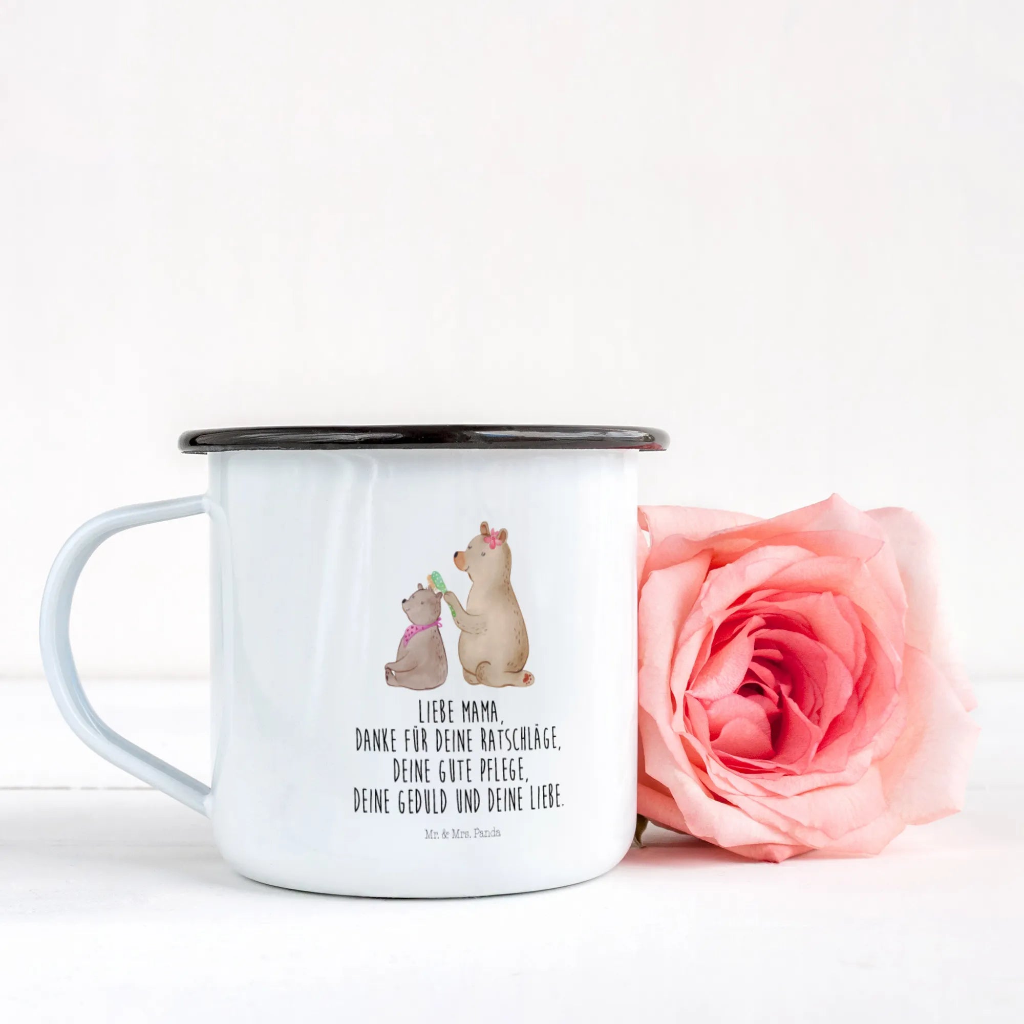 Die XL Emaille Tasse mit dem süßen Motiv "Bär mit Kind" von Mr. & Mrs. Panda ist das perfekte Geschenk für alle Mamas, die Liebe und Fürsorge hoch schätzen.