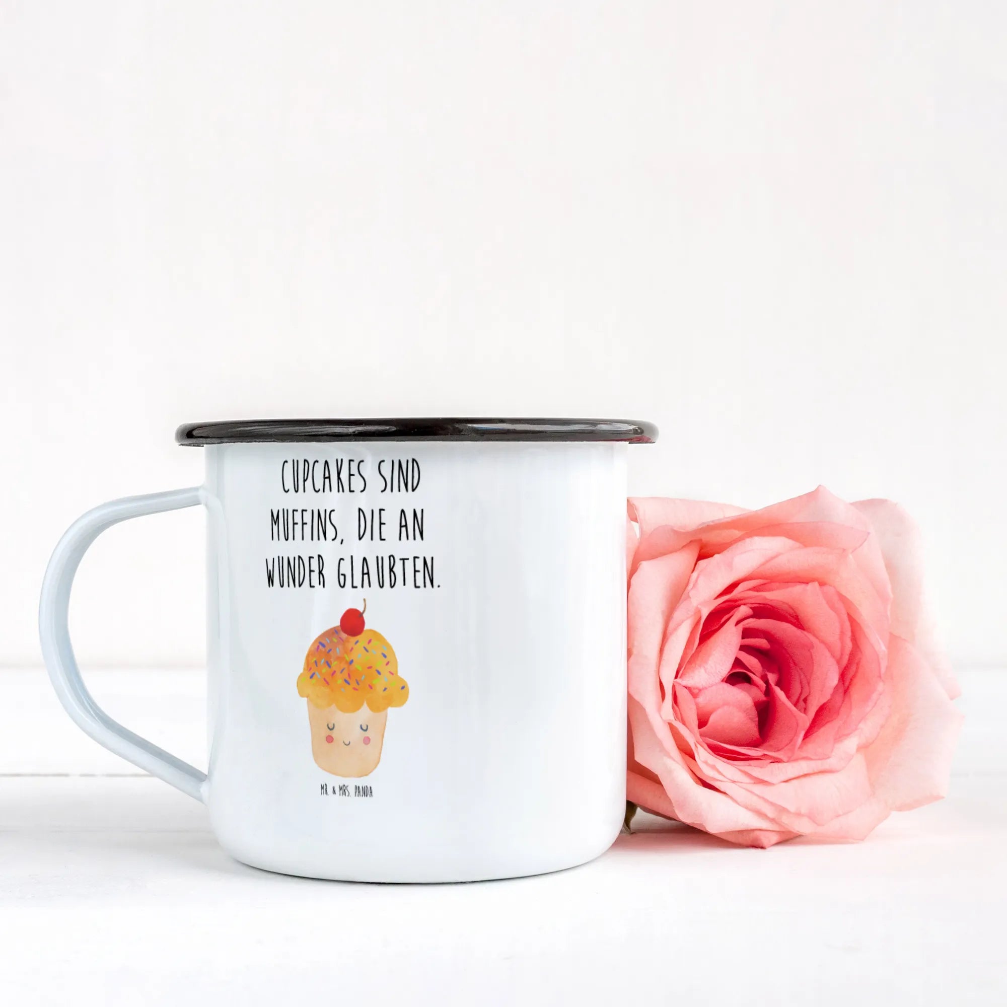 Verwöhne dich selbst oder mache jemand anderem eine Freude mit dieser einzigartigen XL Emaille Tasse von Mr. & Mrs. Panda. Die Kombination aus praktischer Nutzung und liebevollem Design macht sie zu einem Muss für jeden Kaffeeliebhaber oder Outdoor-Fan. Nutze die Tasse für heiße oder kalte Getränke und genieße das Anstoßen mit einem Lächeln. Mach jeden Tag zu etwas Besonderem mit der Cupcake-Tasse aus der Small World Kollektion! ⭐️
