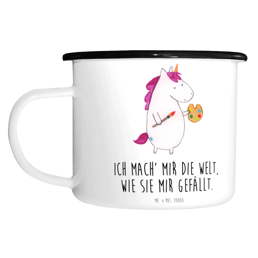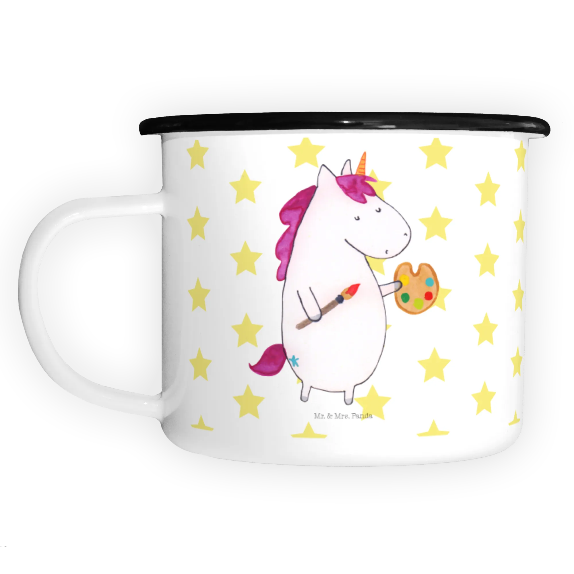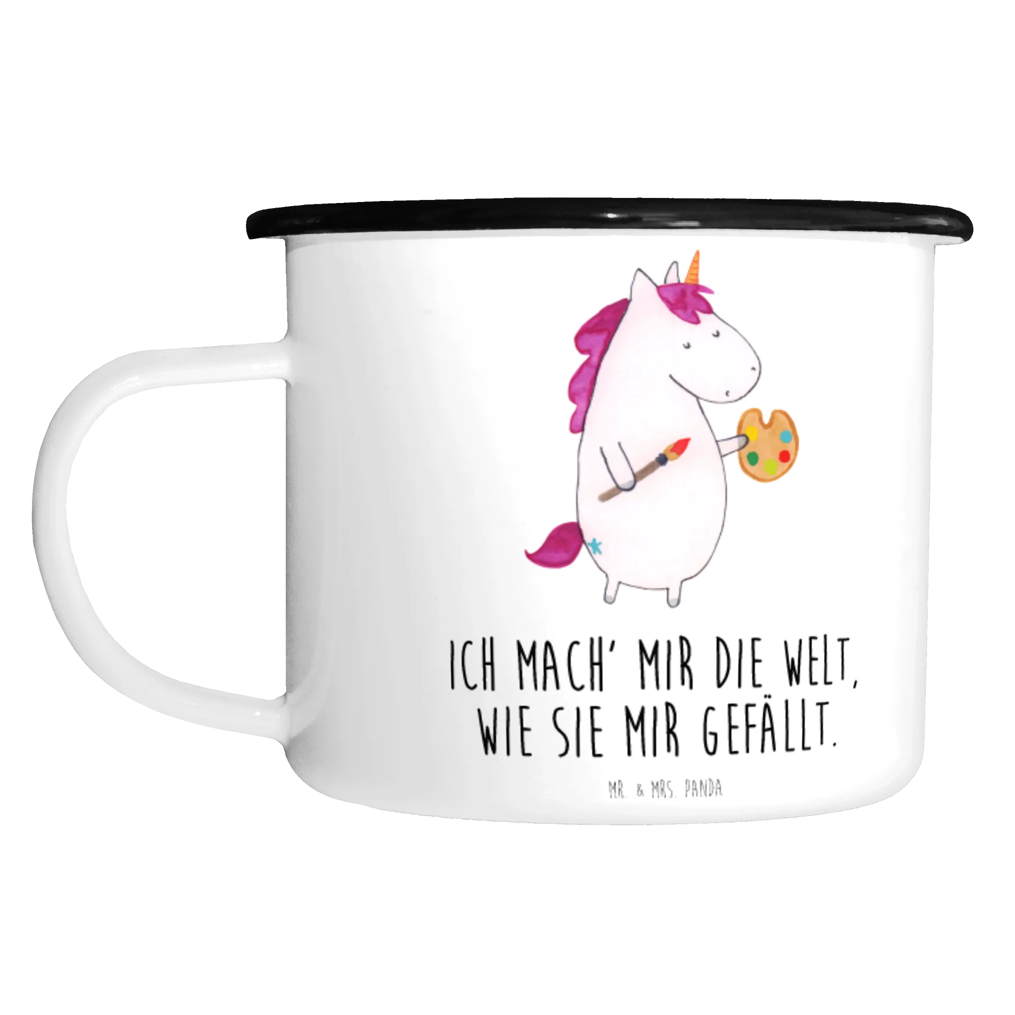 XL Emaille Tasse Einhorn Künstler - mit Spruch