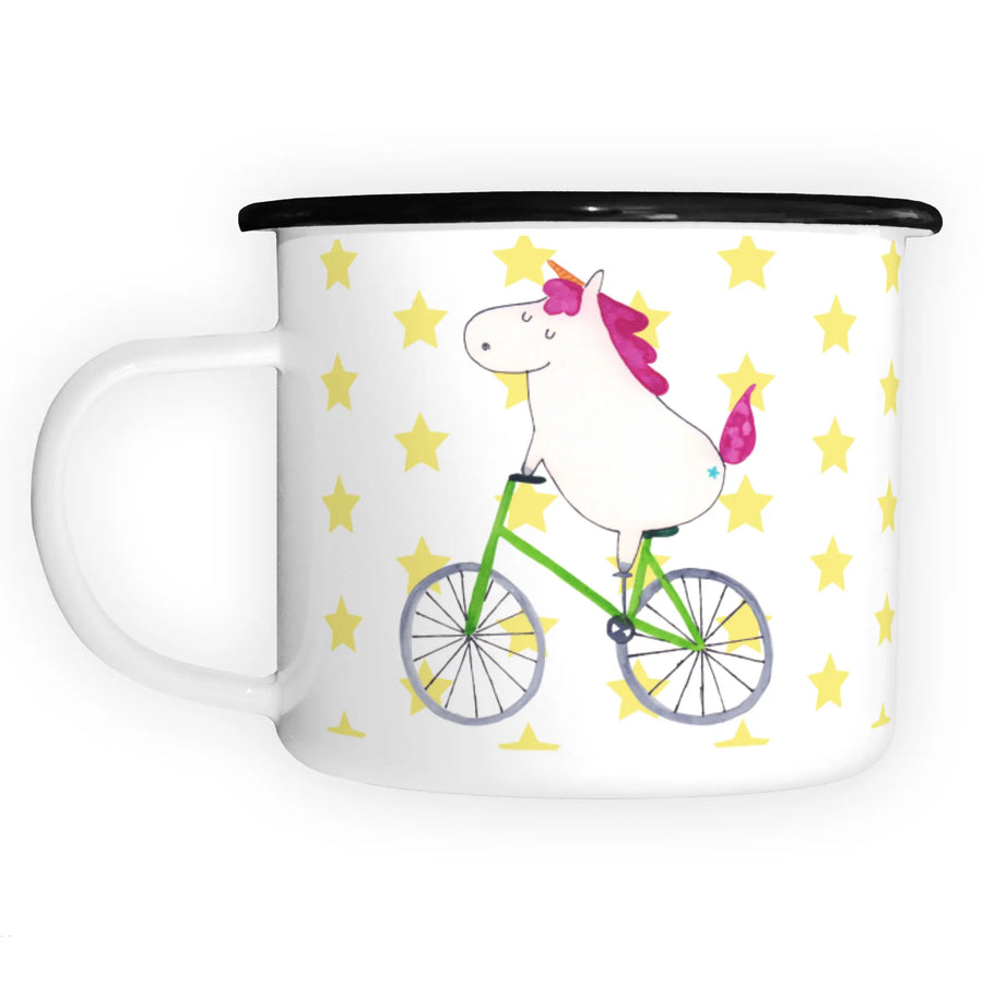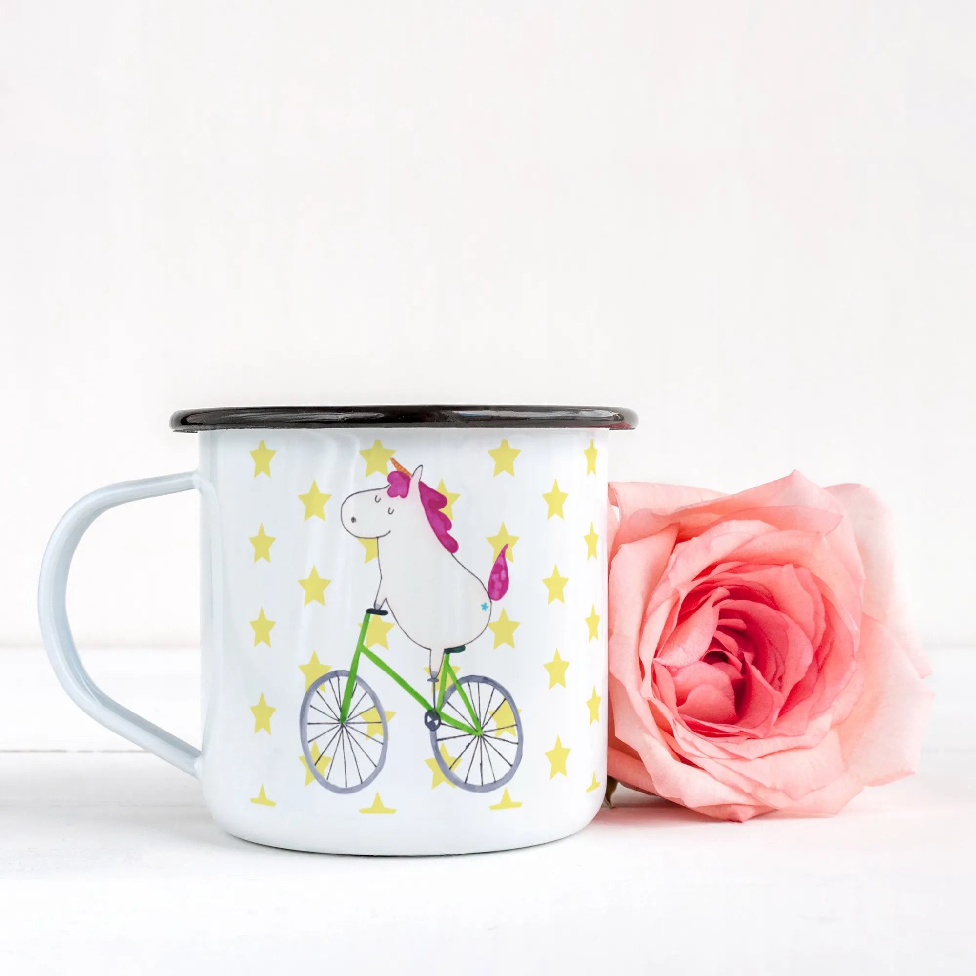 Die XL Emaille Tasse Einhorn Radfahrer von Mr. & Mrs. Panda ist die perfekte Geschenkidee für alle Einhorn-Liebhaber! Mit ihrem farbenfrohen Design zeigt sie ein fröhliches Einhorn, das begeistert mit dem Fahrrad fährt. Sie schafft es, mit ihrem Glitzer und Feenstaub die Welt ein wenig heller zu machen und jedem ein Lächeln ins Gesicht zu zaubern. Egal, ob als Geburtstagsgeschenk, für eine kleine Aufmunterung bei Liebeskummer oder einfach als hübsches Deko-Element für die eigenen vier Wände - diese Tasse ist ein wahres Allround-Talent.