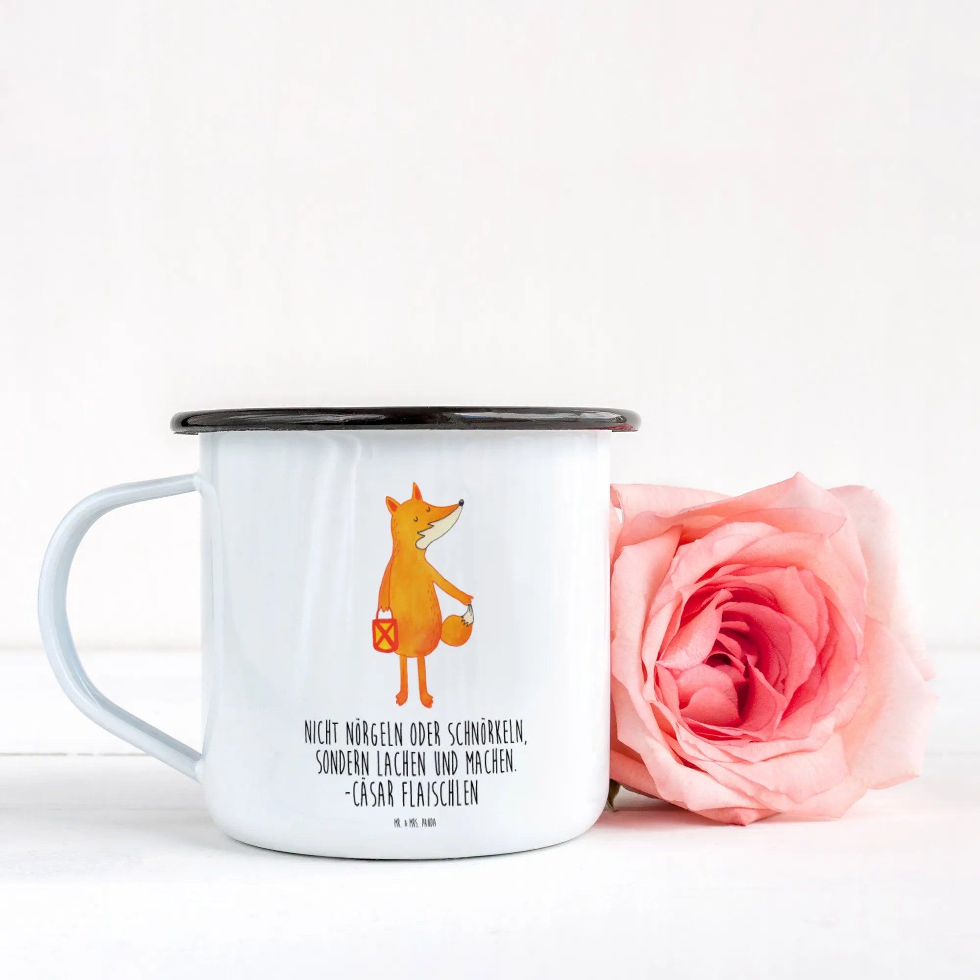 XL Emaille Tasse Fuchs Laterne - mit Spruch