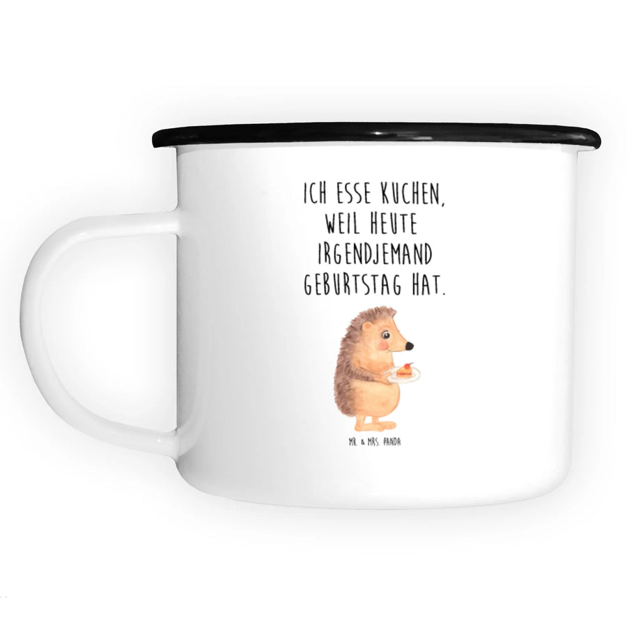 XL Emaille Tasse Igel mit Kuchenstück - mit Spruch - Weiß