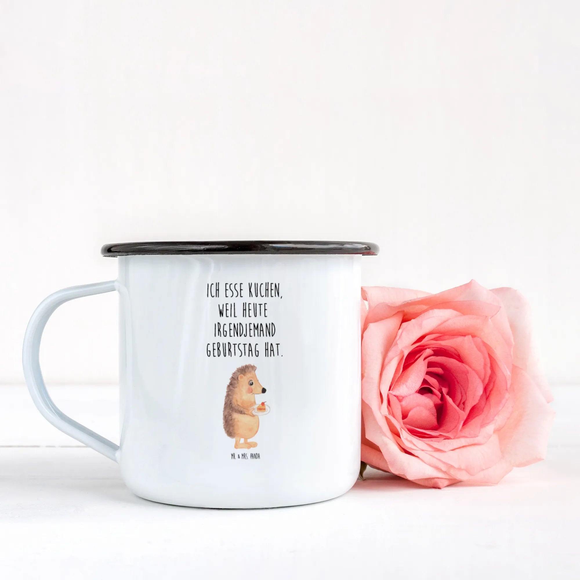 Entdecke die zauberhafte XL Emaille Tasse von Mr. & Mrs. Panda, die perfekt für alle Kuchenliebhaber ist! Unser süßes Motiv mit dem Igel und dem Kuchenstück bringt dir nicht nur Freude beim Trinken, sondern macht auch jeden Kaffeebecher zum Highlight deines nächsten Campingausflugs! Die Tasse hat ein Füllvolumen von 450 ml und bietet dir ausreichend Platz für deinen Kaffee, Tee oder heiße Schokolade.