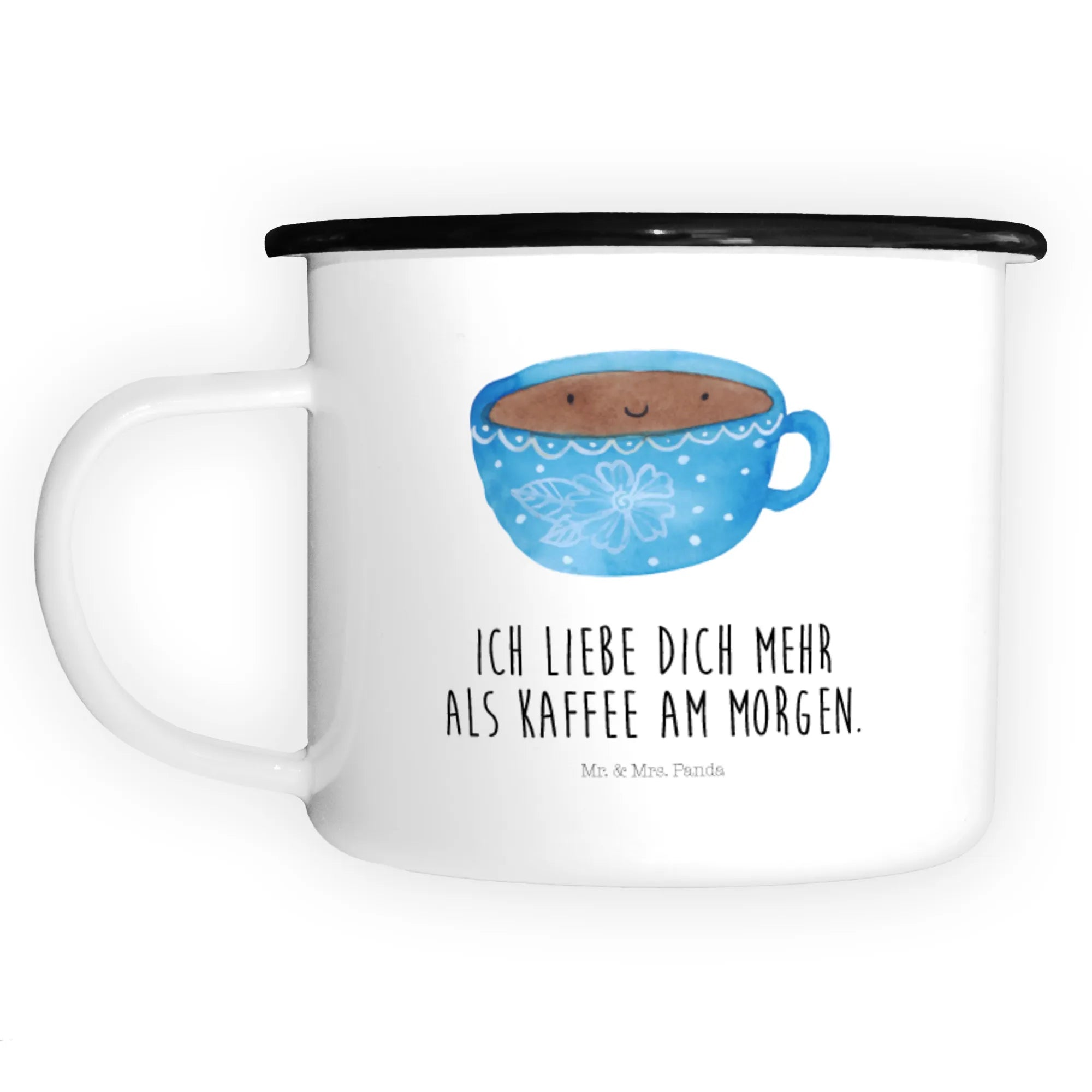 Entdecke die wunderschöne XL Emaille Tasse von Mr. & Mrs. Panda, die nicht nur optisch begeistert, sondern auch durch ihren praktischen Nutzen. Diese stabile Metalltasse ist mit einem fröhlichen Motiv verziert, das dich mit Freude und Energie erfüllt. Sie zeigt eine glückliche Tasse Kaffee, die ein Lächeln auf dein Gesicht zaubert und dich dazu einlädt, dir eine kleine Auszeit zu gönnen.