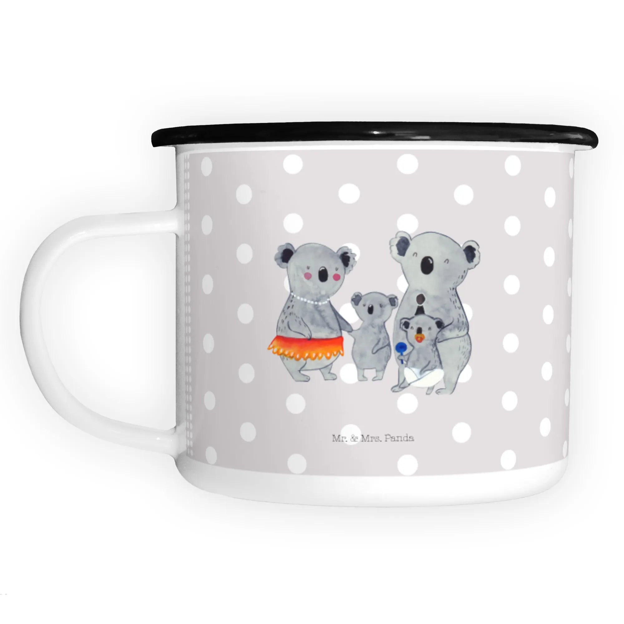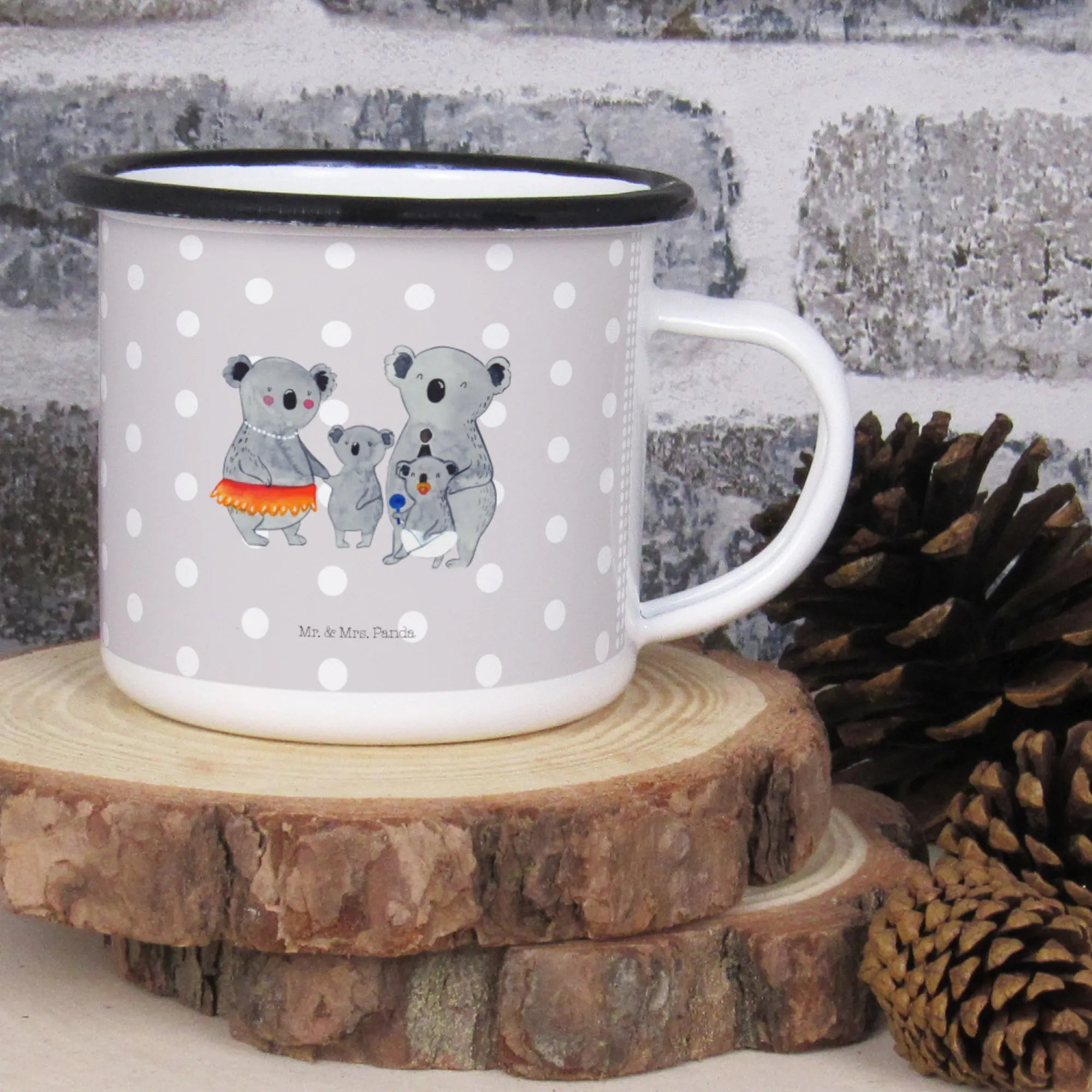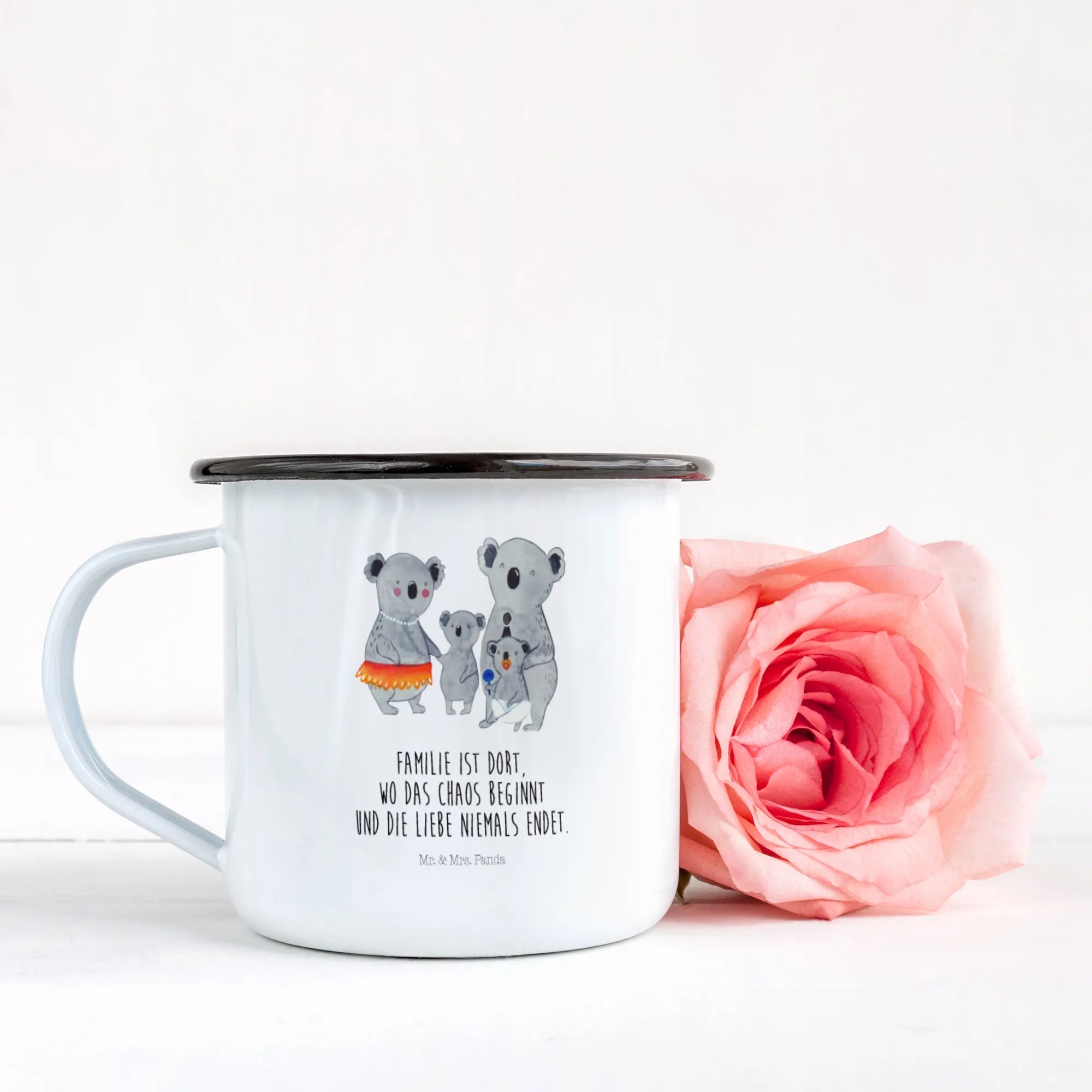 Die XL Emaille Tasse mit dem niedlichen Motiv der Koala Familie von Mr. & Mrs. Panda ist das perfekte Geschenk für alle, die eine große Portion Liebe und ein wenig Chaos im Familienalltag schätzen. Mit einem Füllvolumen von 450 ml bietet diese stabile metallene Kaffeetasse genug Platz für deinen Lieblingskaffee, Tee oder heiße Schokolade – ideal für gemütliche Nachmittage oder aufregende Campingabenteuer.