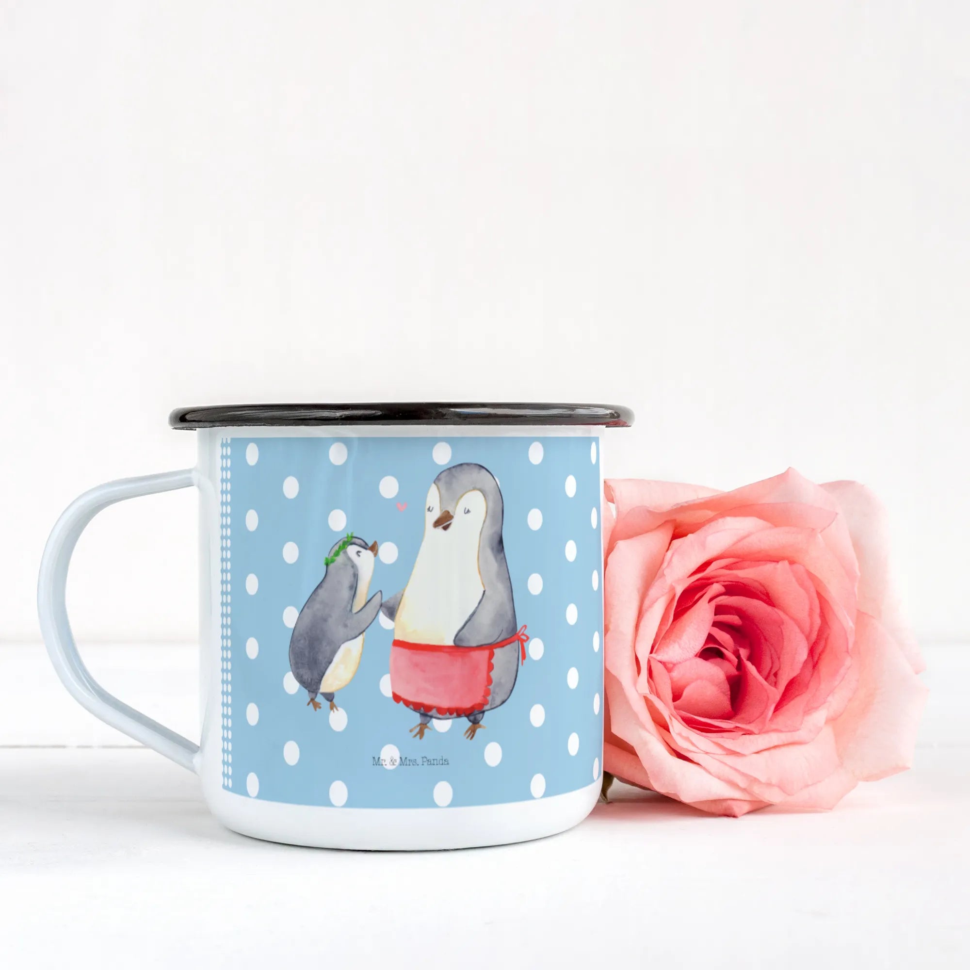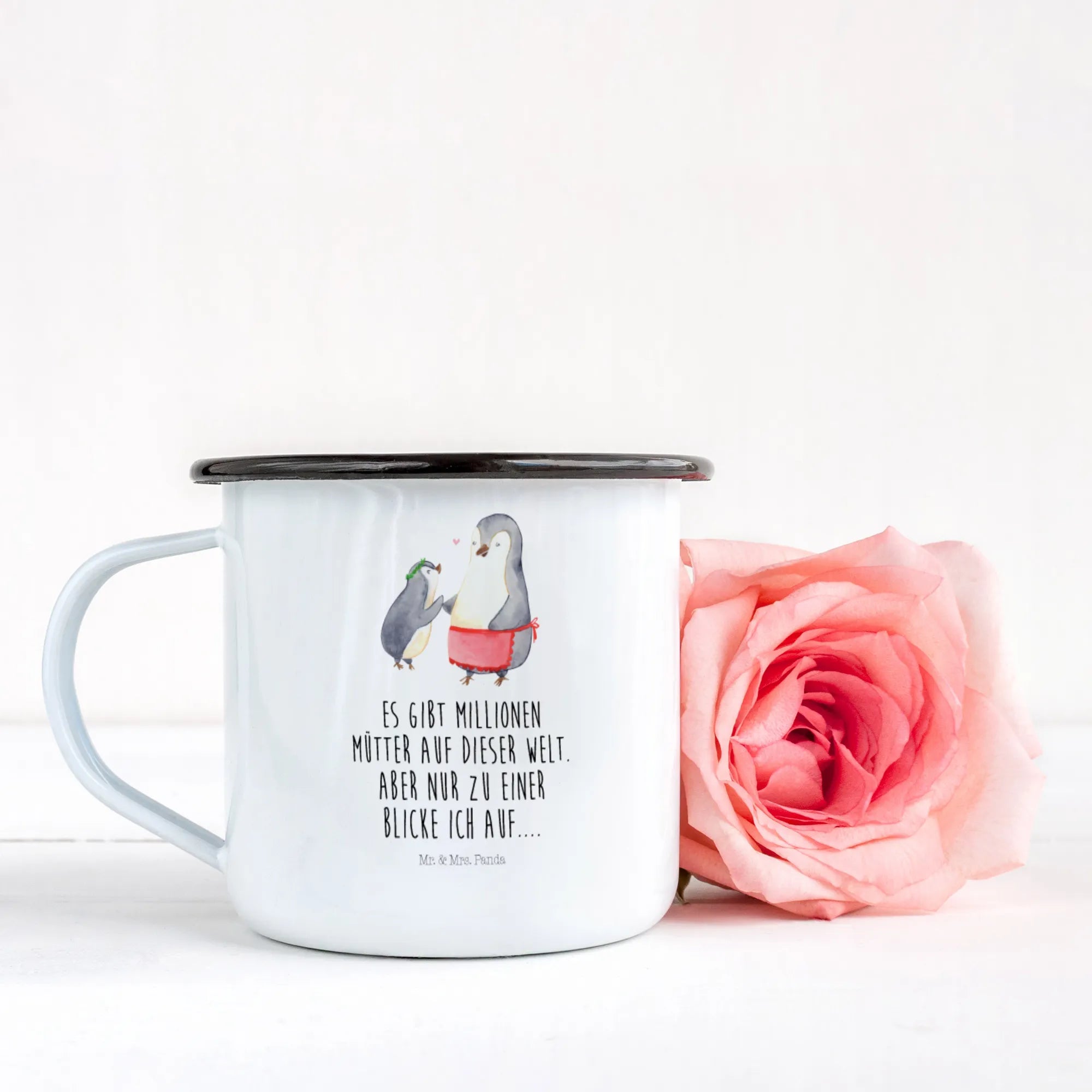 Die XL Emaille Tasse mit dem niedlichen Motiv "Pinguin mit Kind" von Mr. & Mrs. Panda ist das perfekte Geschenk für all die besonderen Mamas, die du kennst. Egal, ob zum Muttertag, Geburtstag oder einfach so, diese Tasse sprüht vor Liebe!