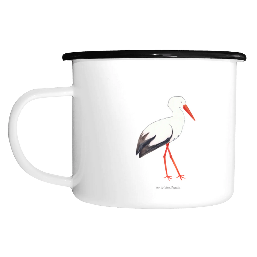 Die XL Emaille Tasse mit dem süßen Storch-Motiv von Mr. & Mrs. Panda ist das perfekte Geschenk für werdende Mütter und frische Eltern.