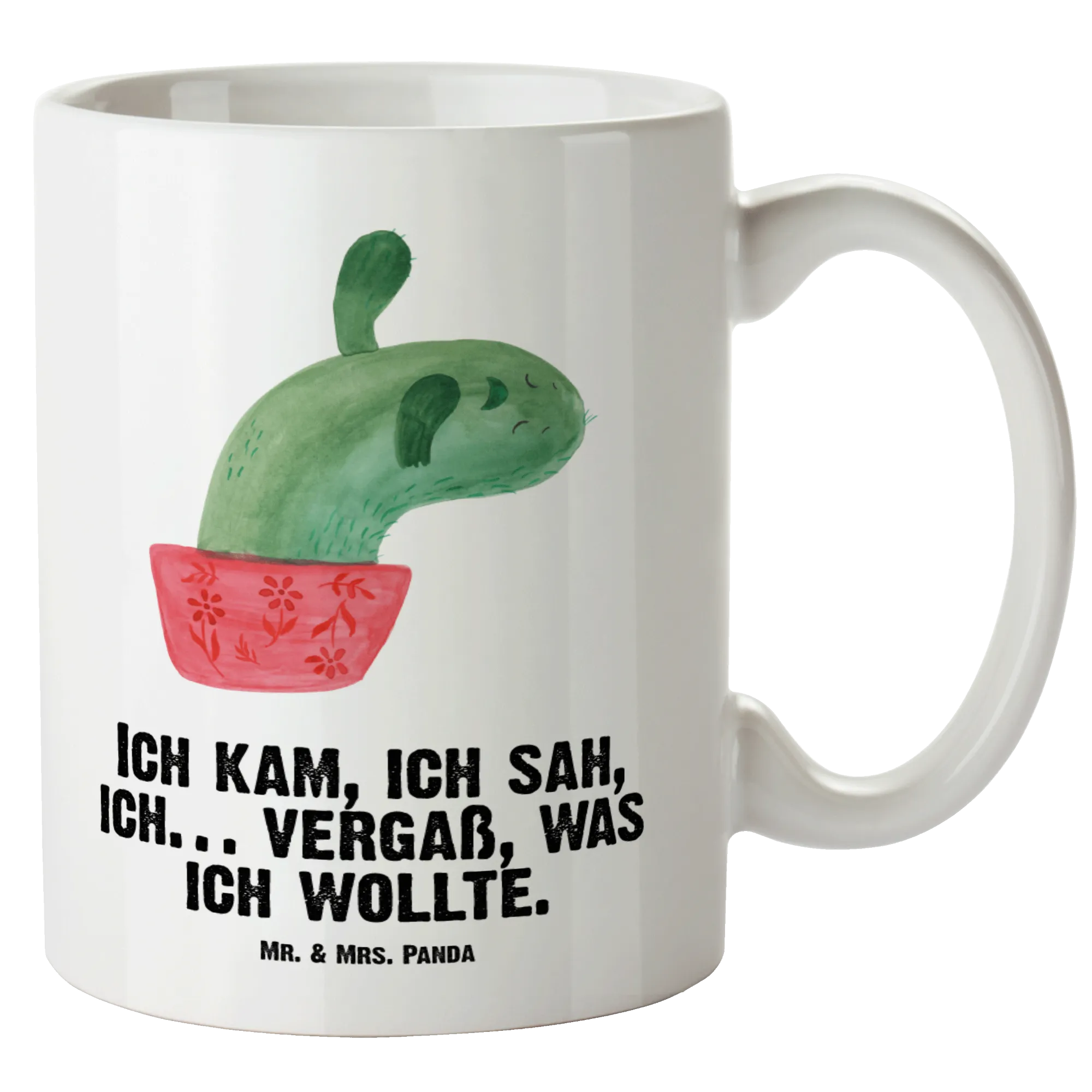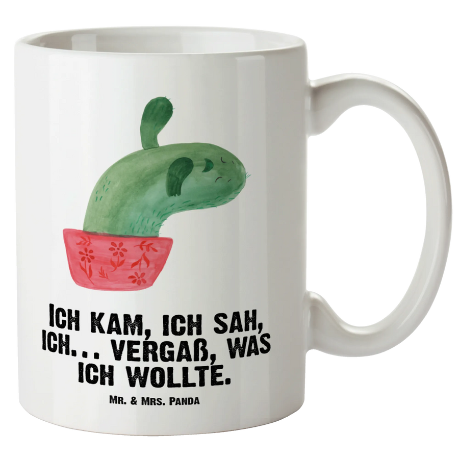 Die XL Tasse Kaktus Mamamia von Mr. & Mrs. Panda ist das perfekte Geschenk für alle, die den Büroalltag etwas aufhellen oder einfach mal wieder lächeln wollen! Mit ihrem fröhlichen Kaktus-Motiv und dem liebevollen Spruch "Ich kam, ich sah, ich… vergaß, was ich wollte" bringt sie nicht nur gute Laune, sondern ist auch äußerst praktisch. Mit einem Füllvolumen von 500 ml ist sie besonders geeignet für große Kaffeeliebhaber und Teetrinker, die gerne einen großen Schluck genießen. Diese wunderschöne und edle XL Tasse ist aus hochwertigem Steingut gefertigt und garantiert eine glänzende Oberfläche, die sofort ins Auge fällt.