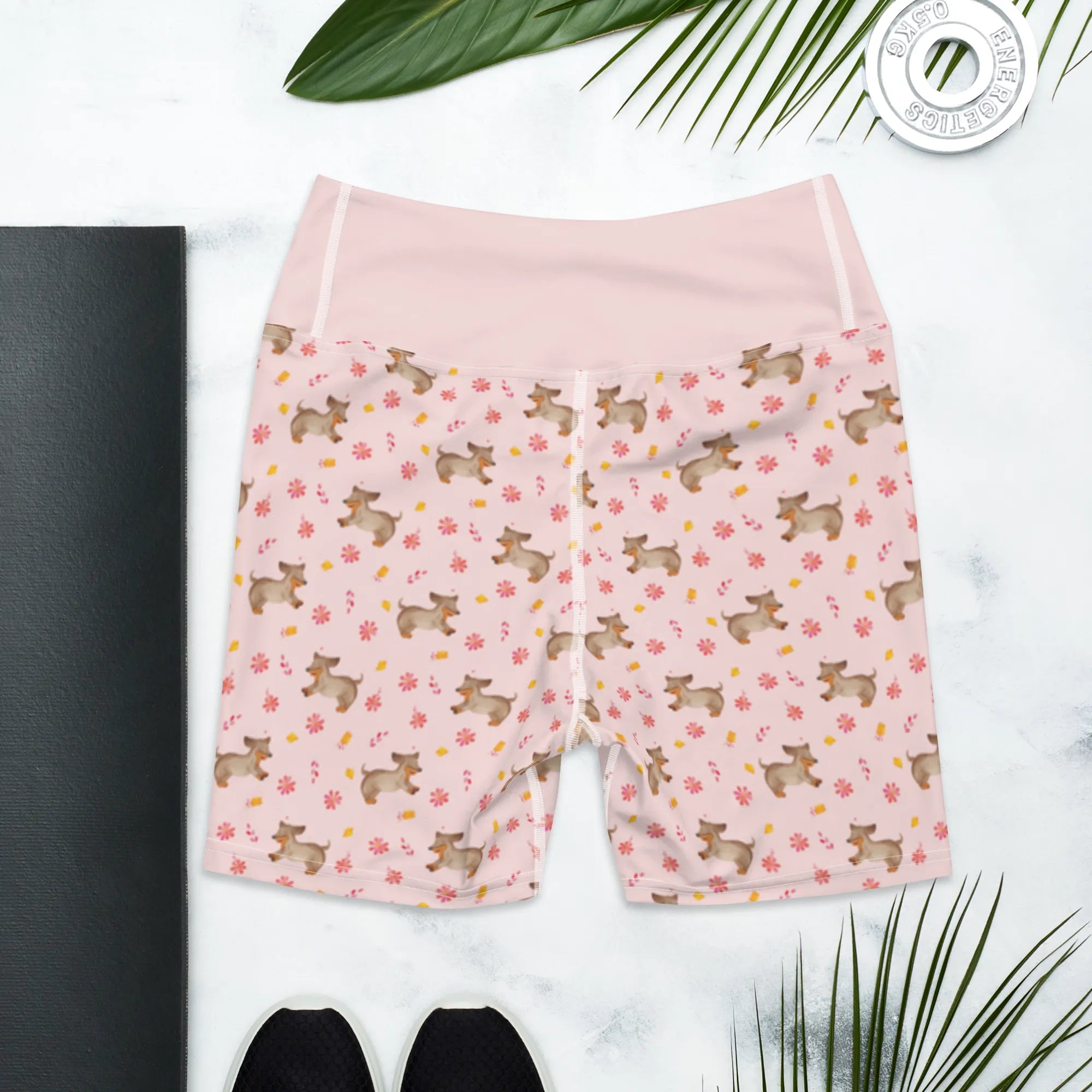 Yoga Shorts Hund Dackel Muster - Größe XL