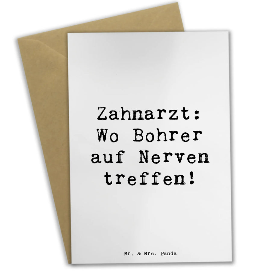 Entdecke die zauberhafte Grußkarte Zahnarzt von Mr. & Mrs. Panda! Diese wunderschöne und einzigartige Grußkarte ist perfekt für alle, die einen Zahnarzt im Freundes- oder Familienkreis haben. Mit dem witzigen Spruch ‘Zahnarzt: Wo Bohrer auf Nerven treffen!’ zaubert diese Karte garantiert ein Lächeln auf die Lippen derjenigen, die sie erhalten. Ideal als Grußkarte für Geburtstage, Einladungen oder einfach, um einen guten Freund aufzuheitern! Mit ihrer hochwertigen Verarbeitung aus 300 Gramm Karton und dem glänzenden Finish ist diese Karte nicht nur optisch ansprechend, sondern auch besonders robust.