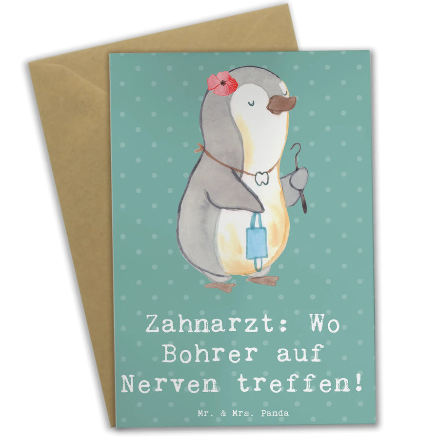 Entdecke die bezaubernde Grußkarte "Zahnarzt: Wo Bohrer auf Nerven treffen!" aus der liebevollen ‚Berufe‘ Kollektion von Mr. & Mrs. Panda. Diese Karte ist nicht nur ein einfacher Glückwunsch, sondern ein kreatives kleines Kunstwerk, das perfekt geeignet ist, um Danke zu sagen oder Glückwünsche zu besonderen Anlässen auszusprechen.