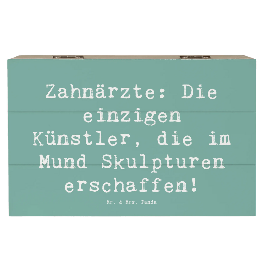 Du suchst das perfekte Geschenk für einen Zahnarzt oder einen zahnmedizinisch begeisterten Freund? Dann ist die wunderschöne Holzkiste von Mr. & Mrs. Panda mit dem lustigen Spruch "Zahnärzte: Die einzigen Künstler, die im Mund Skulpturen erschaffen!" genau das Richtige!