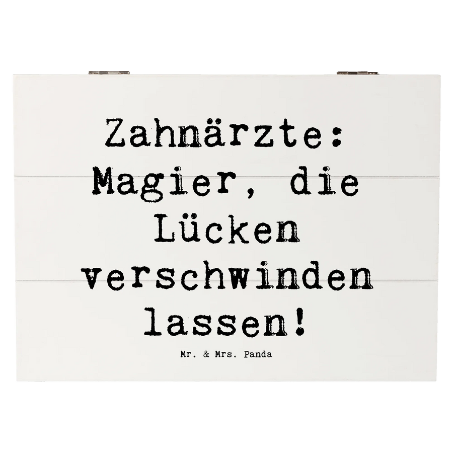 Entdecke die bezaubernde Holzkiste von Mr. & Mrs. Panda - perfekt für alle Zahnarztliebhaber! Diese wunderschöne Erinnerungsbox mit dem Spruch "Zahnärzte: Magier, die Lücken verschwinden lassen!" ist nicht nur ein Blickfang, sondern auch ein praktischer Aufbewahrungsort für all Deine wertvollen Schätze.