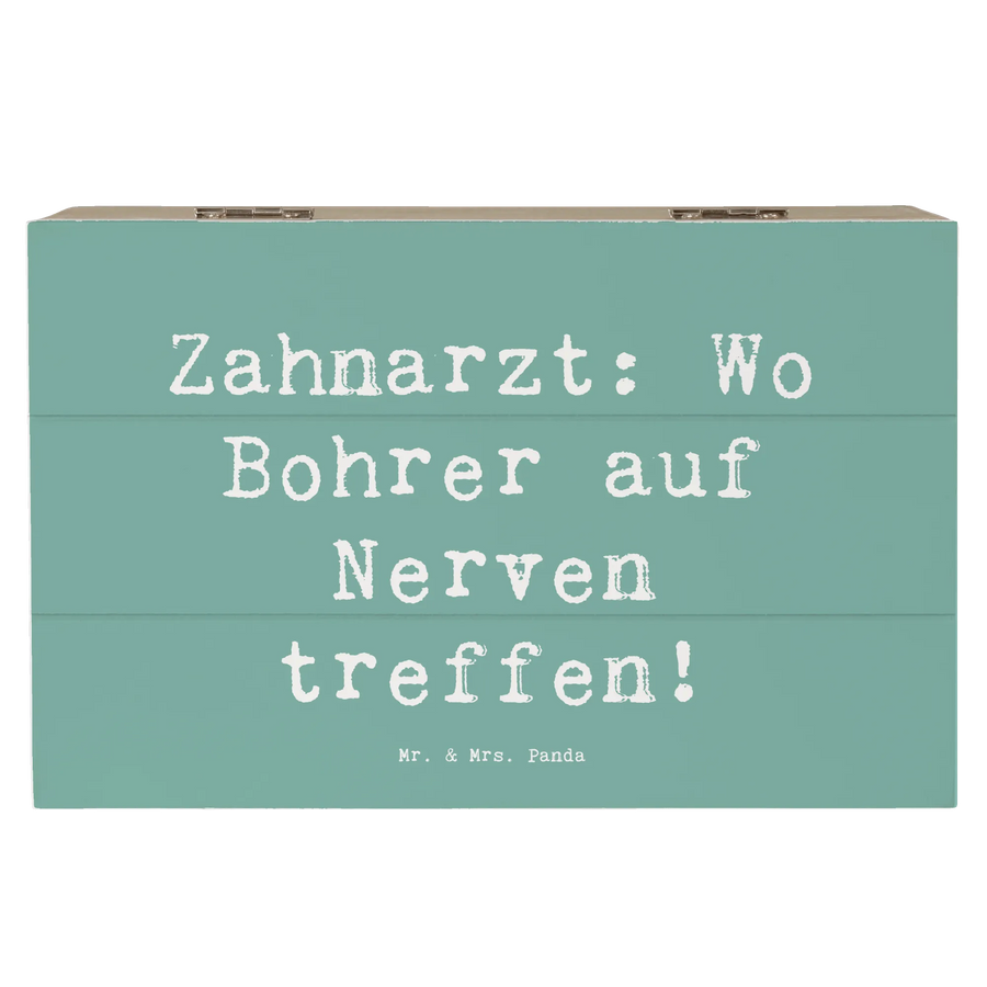 Entdecke die tolle Holzkiste von Mr. & Mrs. Panda mit dem originellen Motiv 'Zahnarzt: Wo Bohrer auf Nerven treffen!'. Diese Kiste ist nicht nur ein echter Blickfang, sondern auch ein praktischer Aufbewahrungsort für all Deine wertvollen Schätze.