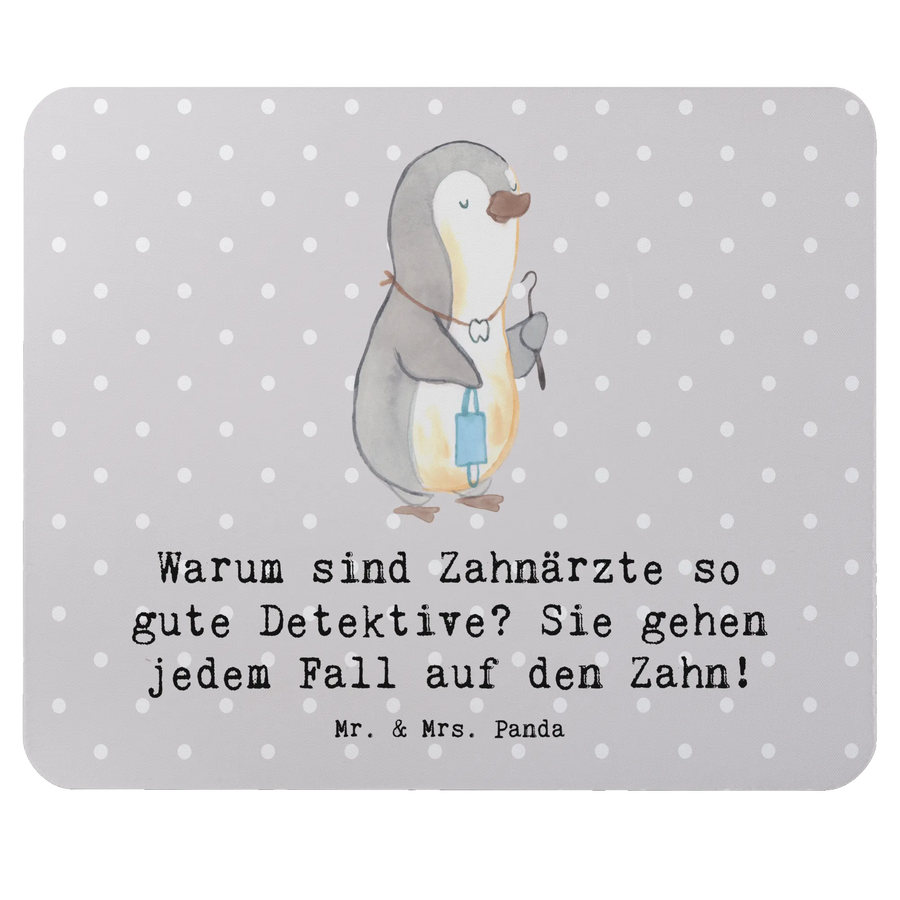 Wenn du auf der Suche nach einem ganz besonderen Geschenk für einen liebevollen Zahnarzt bist oder einfach deinem eigenen Arbeitsplatz in der Praxis einen fröhlichen Touch verleihen möchtest, dann ist das Mauspad mit dem Zahnarzt-Motiv aus unserer Berufe-Kollektion von Mr. & Mrs. Panda genau das Richtige für dich! Mit dem charmanten Spruch "Warum sind Zahnärzte so gute Detektive? Sie gehen jedem Fall auf den Zahn!" zaubert dieses Mauspad jedem ein Lächeln ins Gesicht.
