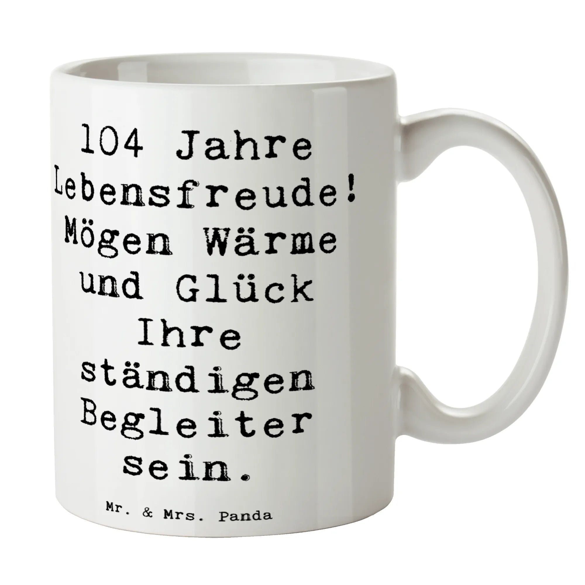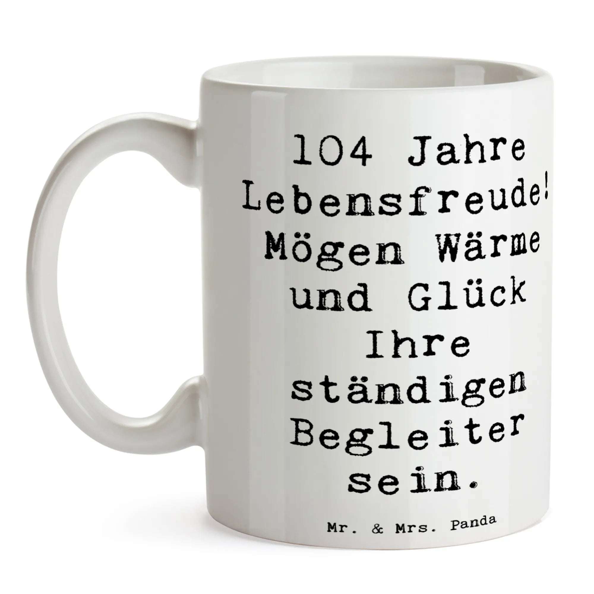 Mug Saying 104 Jahre Lebensfreude! Mögen Wärme und Glück Ihre ständigen Begleiter sein. - White