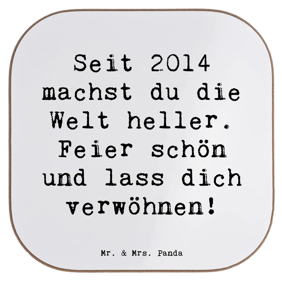 Square coaster Saying Seit 2014 machst du die Welt heller. Feier schön und lass dich verwöhnen! - White