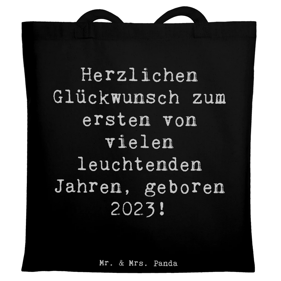 Tote bag Saying Herzlichen Glückwunsch zum ersten von vielen leuchtenden Jahren, geboren 2023! - Black
