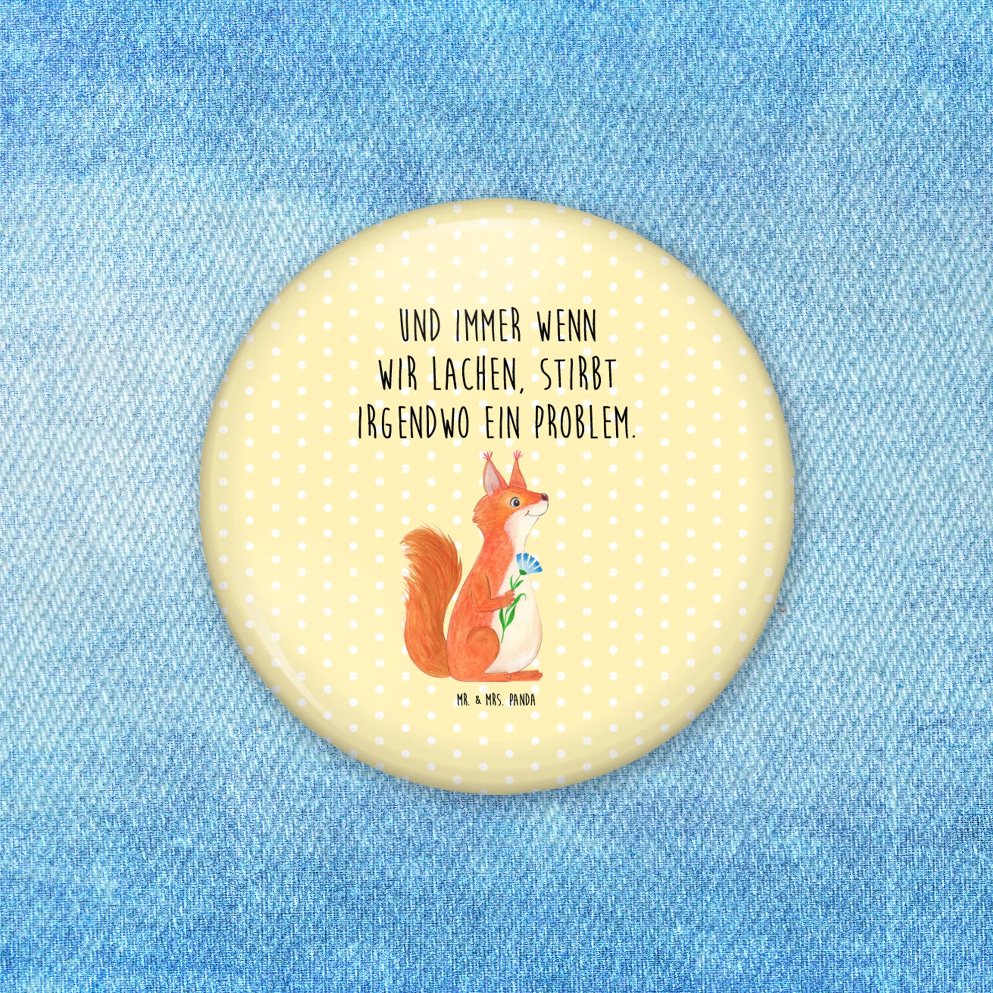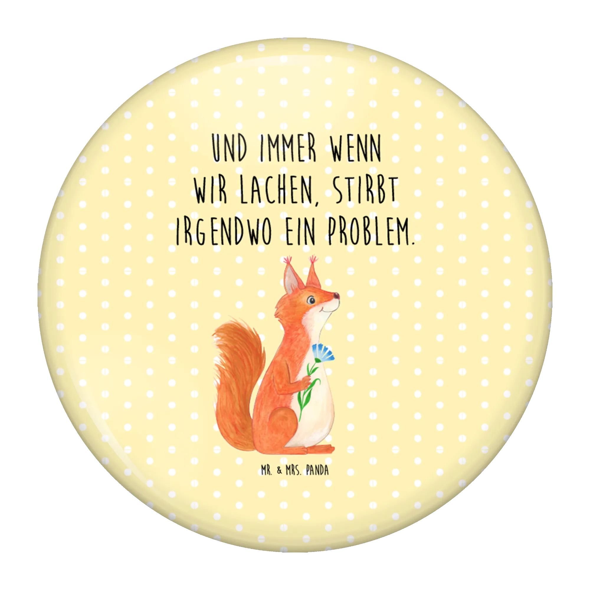 The saying intertwined with this design encourages connection, showing that laughter can indeed make problems disappear. This Squirrel and Flower Button also makes a great gift for occasions such as housewarming parties, holidays, or just to brighten someone's day.