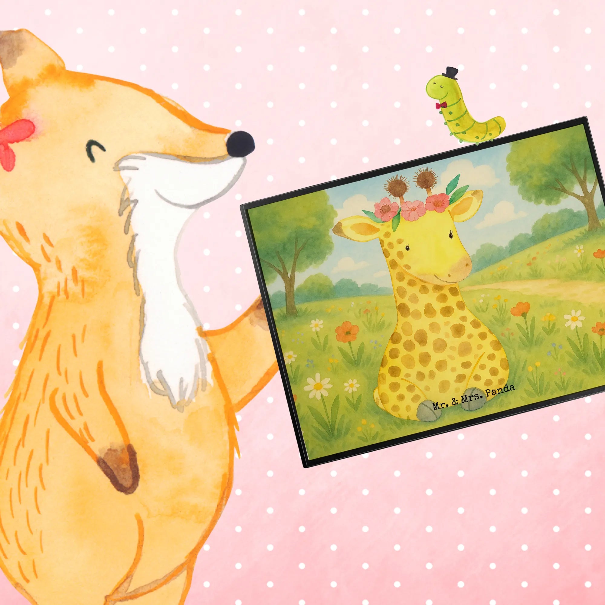 Desk pad giraffe flower wreath Design - with saying