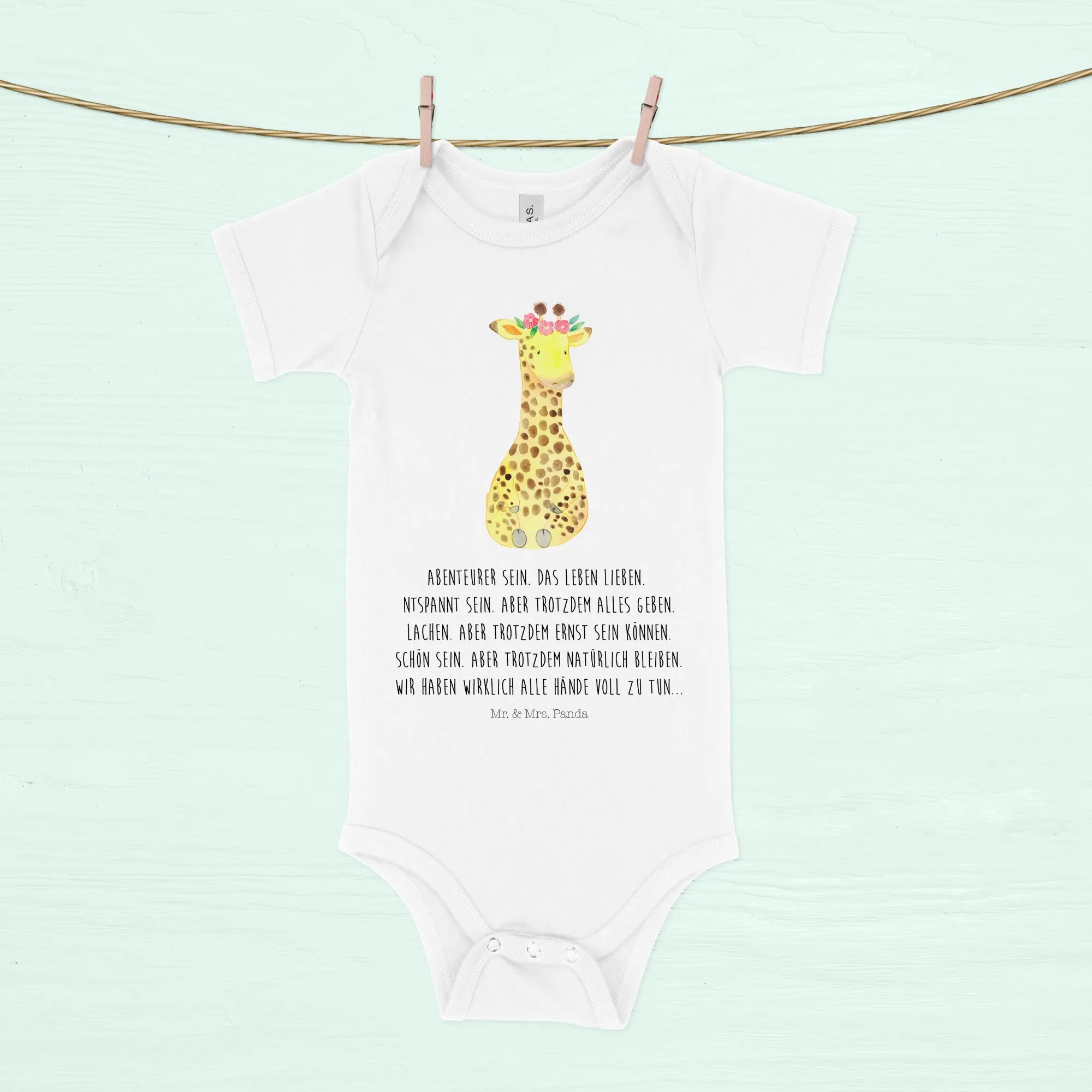 Organic Baby Body giraffe flower wreath - 3. - 6. Monat - with a saying