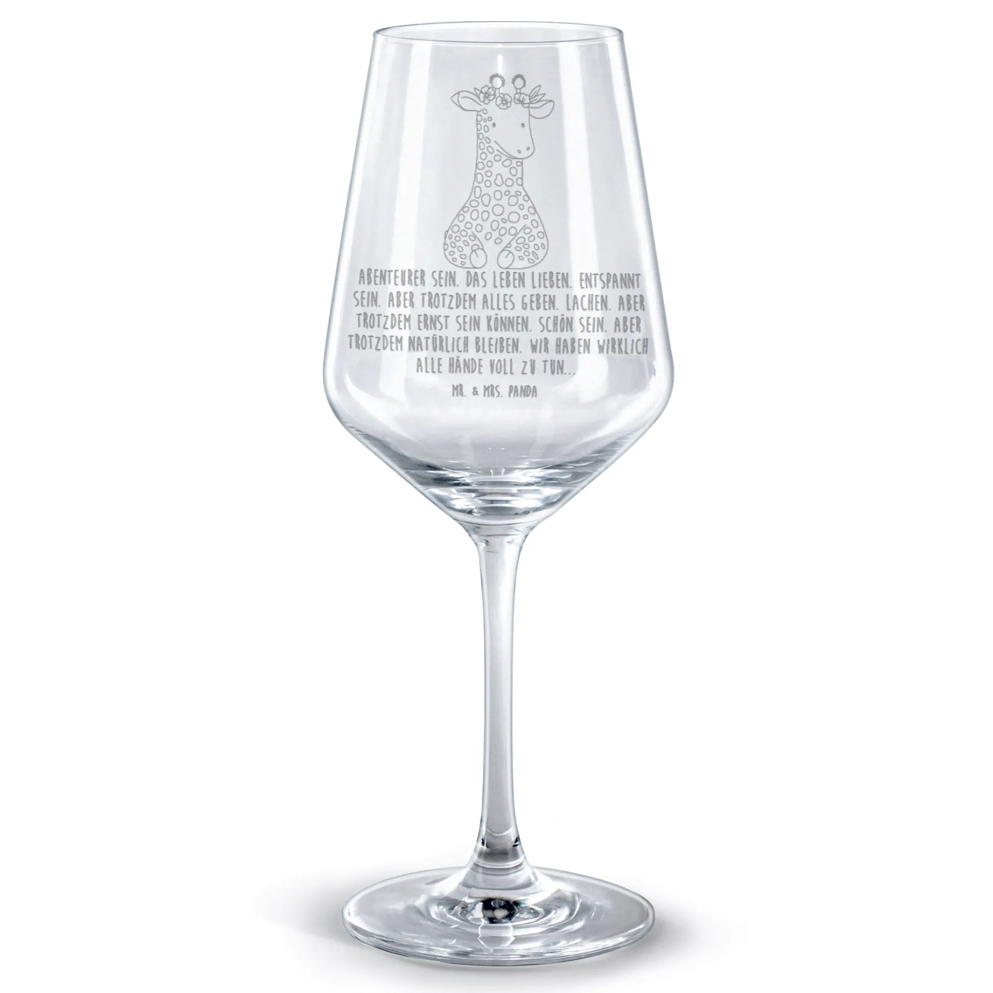 Imagine yourself enjoying a glass of exquisite red wine while gazing at a beautiful giraffe adorned with a wreath of flowers. This enchanting image comes to life in our Red Wine Glass from the special Africa collection, crafted by Mr. & Mrs. Panda. This stunning wine glass is not just a drinking vessel; it’s a charming piece of art that speaks to every wine lover’s heart, making it the perfect gift for friends, family, or yourself!