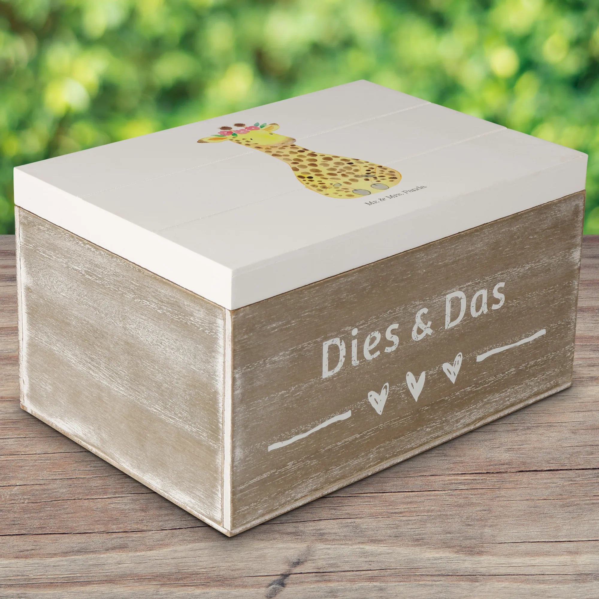 Wooden chest giraffe flower wreath - 22 x 15 cm - with saying