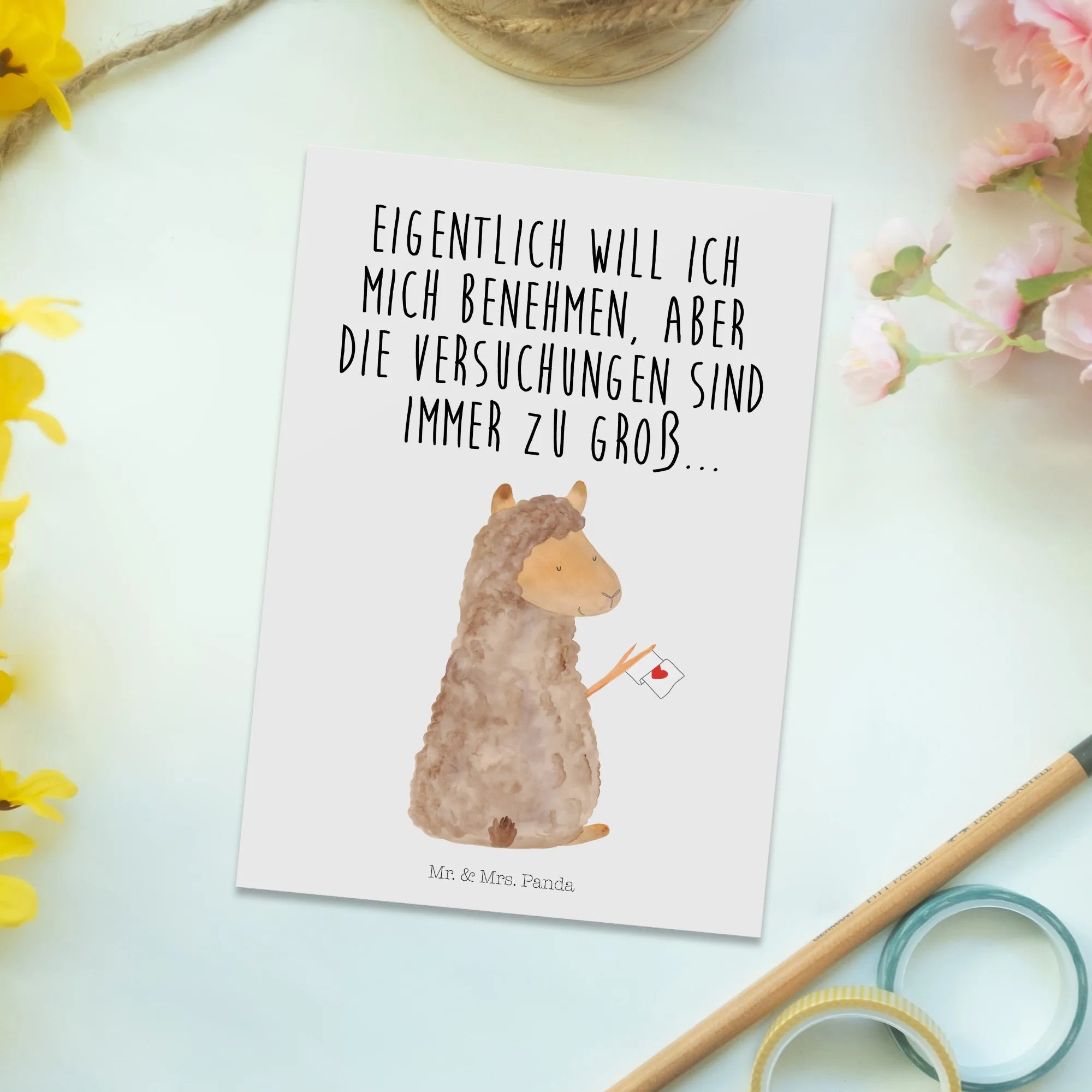 Picture this whimsical alpaca, proudly waving its flag decorated with a heart, bringing a burst of happiness to your day. This motif, playfully stating, 'Eigentlich will ich mich benehmen, aber die Versuchungen sind immer zu groß,' perfectly captures that cheeky side of us that just can't resist a bit of fun. The lovable alpaca stands as a symbol of joyous exploration and cuddly warmth, inviting you to embrace life’s little adventures and letting love lead the way. So go ahead—celebrate your quirky side and revel in the heartwarming charm of this delightful alpaca! With every glance, it’s a reminder that a touch of playfulness makes life so much sweeter.