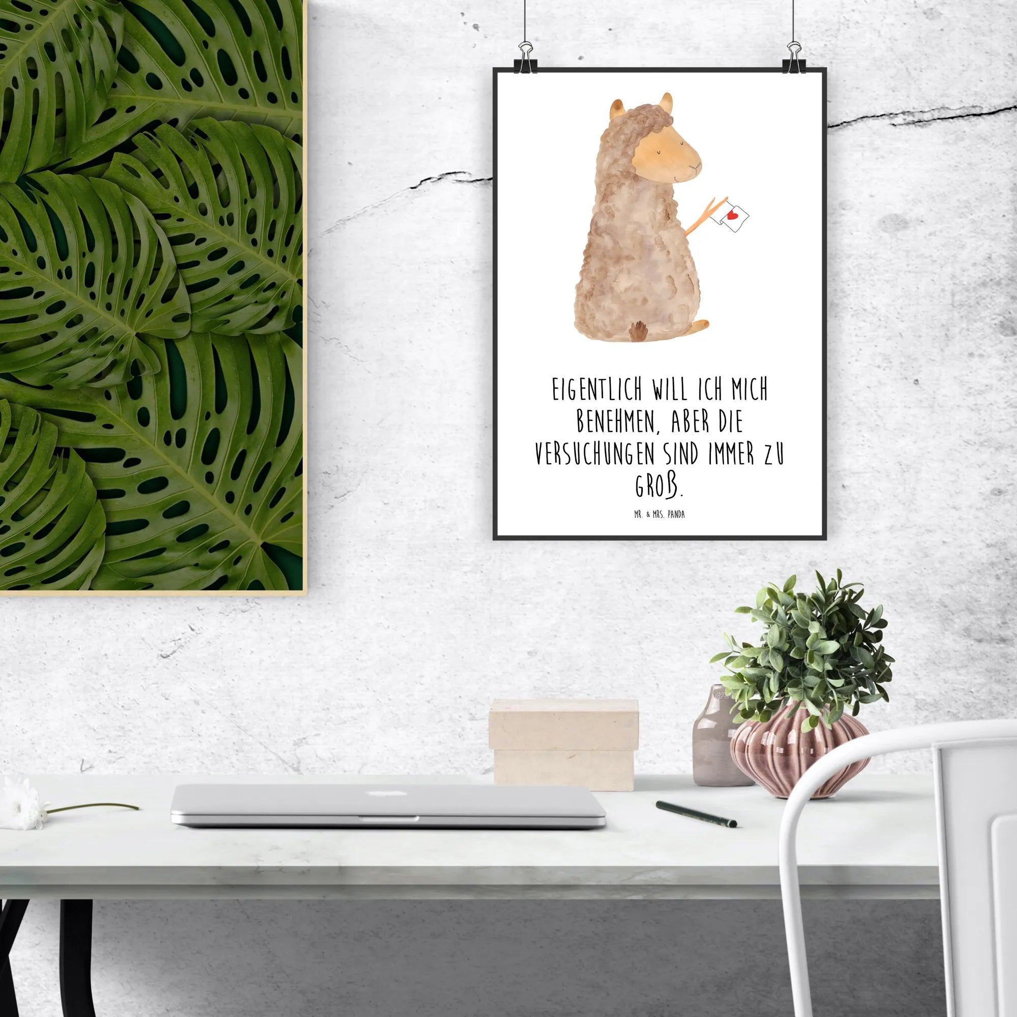 Imagine a cute alpaca holding a flag adorned with a heart, exuding a charm that’s simply irresistible. This delightful motif reminds us of the playful nature of life, where love and laughter lead the way. With the slogan, 'Eigentlich will ich mich benehmen, aber die Versuchungen sind immer zu groß,' we’re reminded that while we might aspire to behave, sometimes the sweetness of life’s little temptations calls us to indulge. The alpaca here invites you to embrace joy and let your heart soar—after all, life is too short not to enjoy every moment to the fullest!
