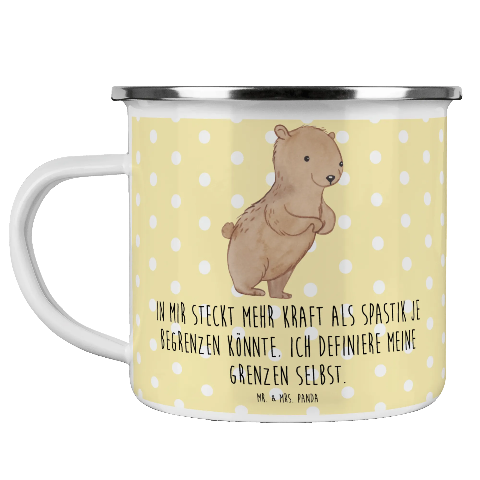 Introducing the fabulous Enamel Camping Mug from Mr. & Mrs. Panda! Measuring 80 mm x 80 mm x 80 mm and holding up to 300 ml (12 oz), this charming camping mug is perfect for your outdoor adventures. Made from scratch-resistant enamel, this durable coffee cup features adorable designs and fun quotes from Mr. & Mrs. Panda, making it a delightful companion for those camping trips or hiking excursions. Lightweight and practical, this metal cup is suited for both hot and cold beverages, transforming your coffee or tea into a cozy moment in the great outdoors. Just a friendly reminder: while it’s super cute and robust, it's best to hand wash this gem to keep it looking its best, as it’s not dishwasher-safe. Enjoy every sip from your new camping companion!