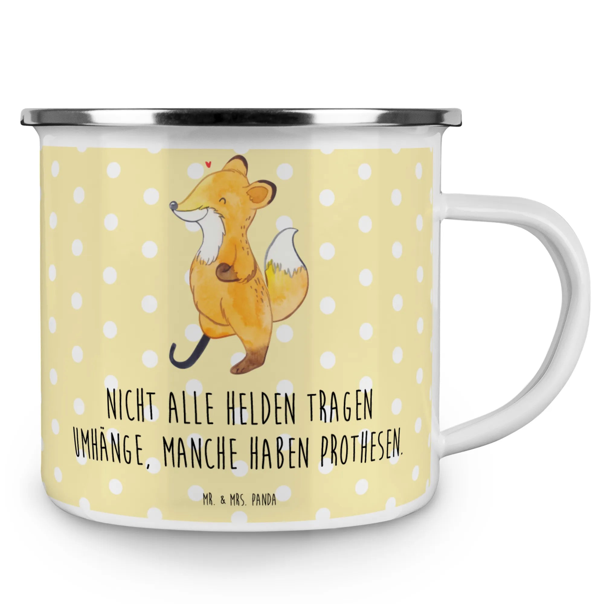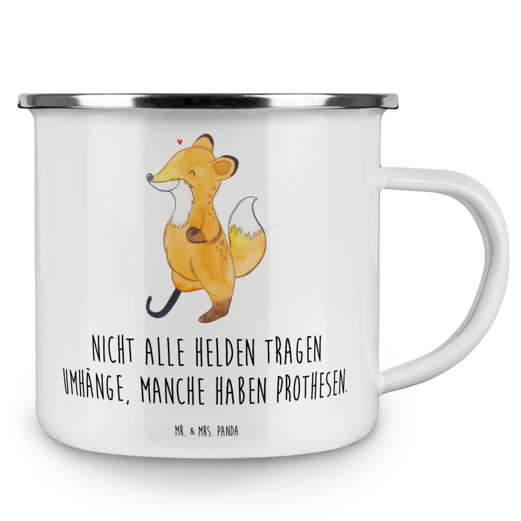 Enamel camping mug Fox Leg prosthesis - White