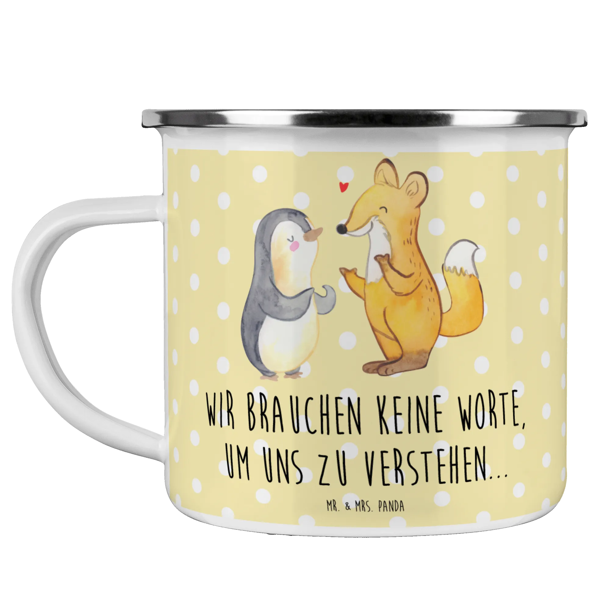 Introducing the fabulous Enamel Camping Mug from Mr. & Mrs. Panda! Measuring 80 mm x 80 mm x 80 mm and holding up to 300 ml (12 oz), this charming camping mug is perfect for your outdoor adventures. Made from scratch-resistant enamel, this durable coffee cup features adorable designs and fun quotes from Mr. & Mrs. Panda, making it a delightful companion for those camping trips or hiking excursions. Lightweight and practical, this metal cup is suited for both hot and cold beverages, transforming your coffee or tea into a cozy moment in the great outdoors. Just a friendly reminder: while it’s super cute and robust, it's best to hand wash this gem to keep it looking its best, as it’s not dishwasher-safe. Enjoy every sip from your new camping companion!
