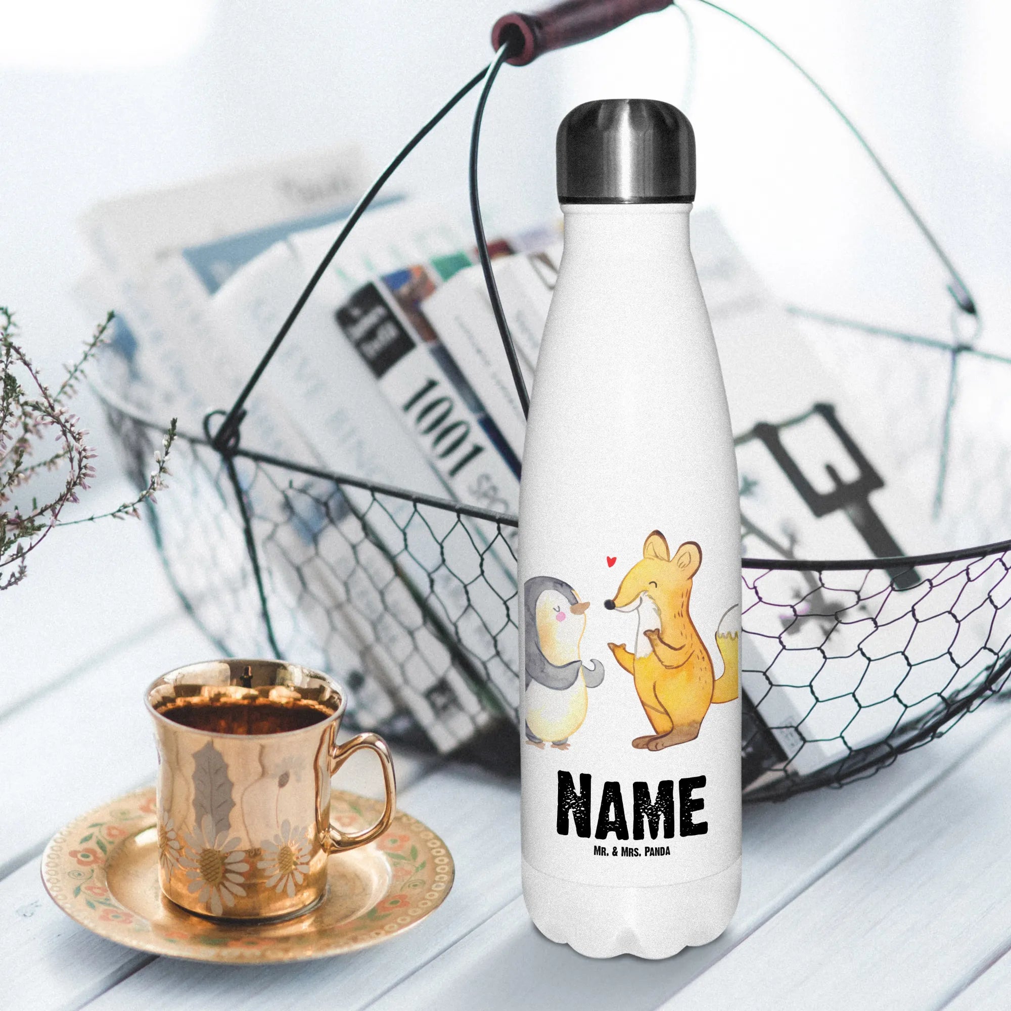 Personalised insulated bottle Fox & Penguin deaf