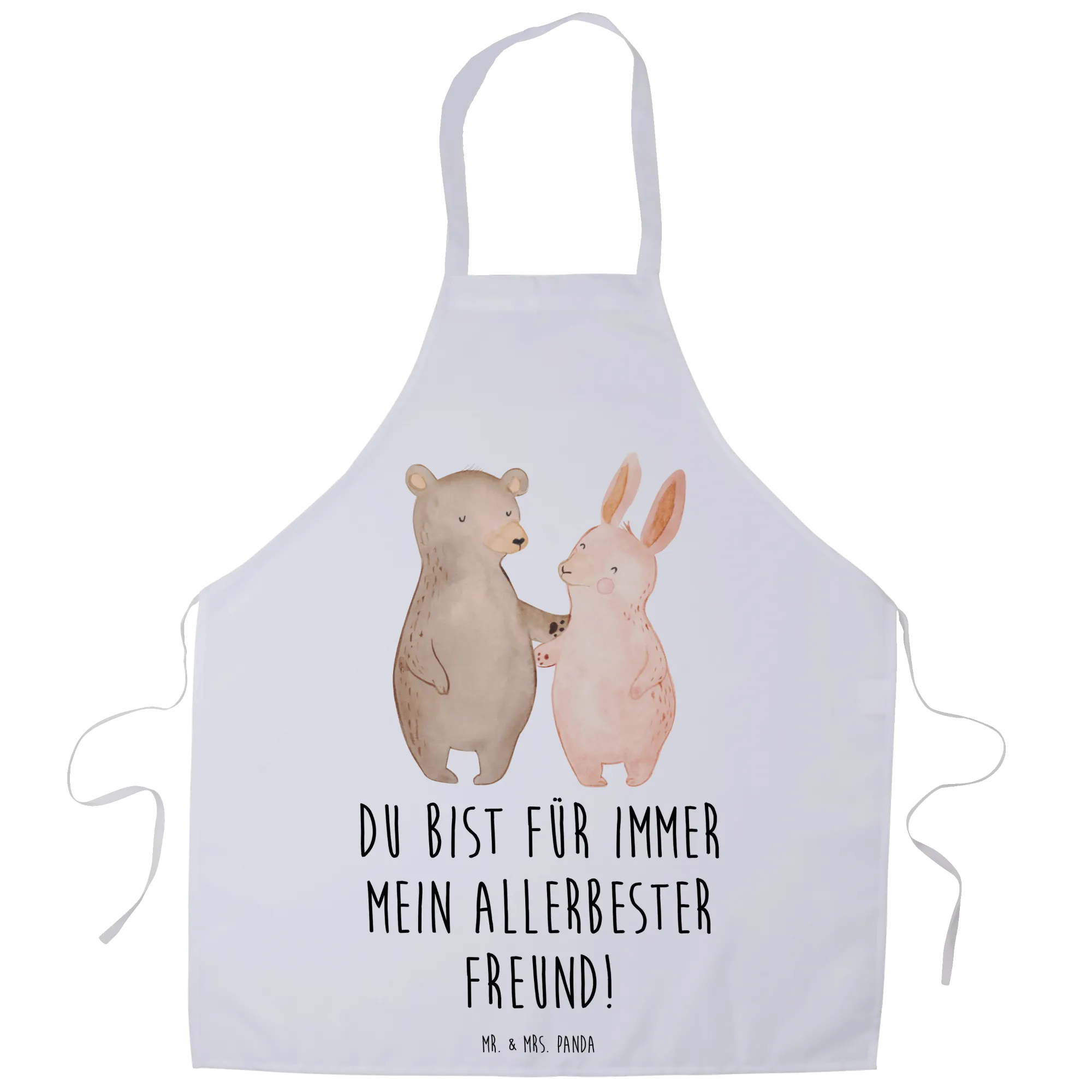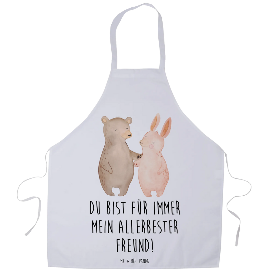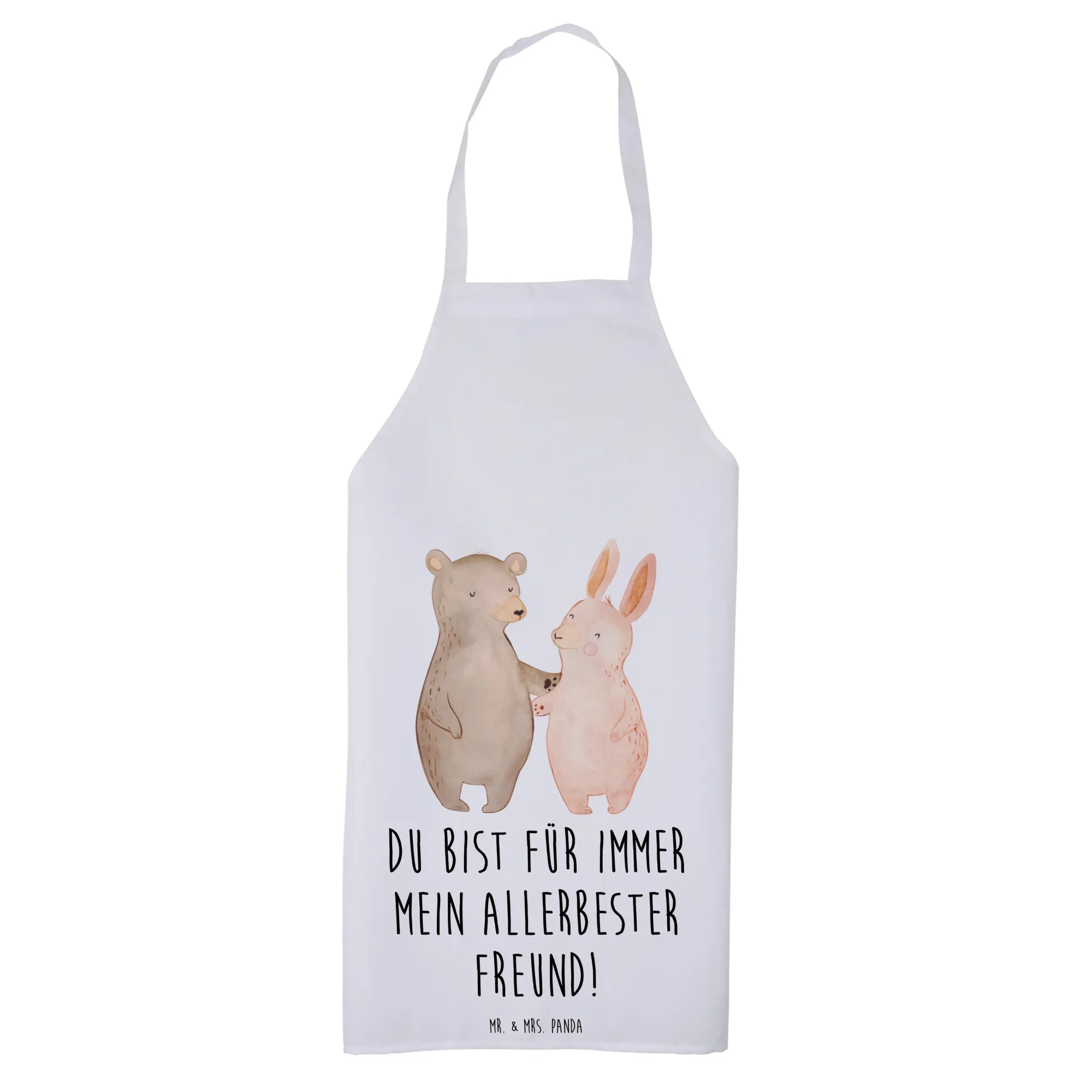 Featuring a charming motif of a bear and a bunny sharing a warm hug, this apron encapsulates the essence of love and friendship. With its vibrant colors and adorable cartoon style, it radiates joy, making cooking a delightful experience. The soft, warm hues of brown and pink are sure to bring a smile to the face of your best friend, partner, or family member, reminding them that they are cherished and adored.