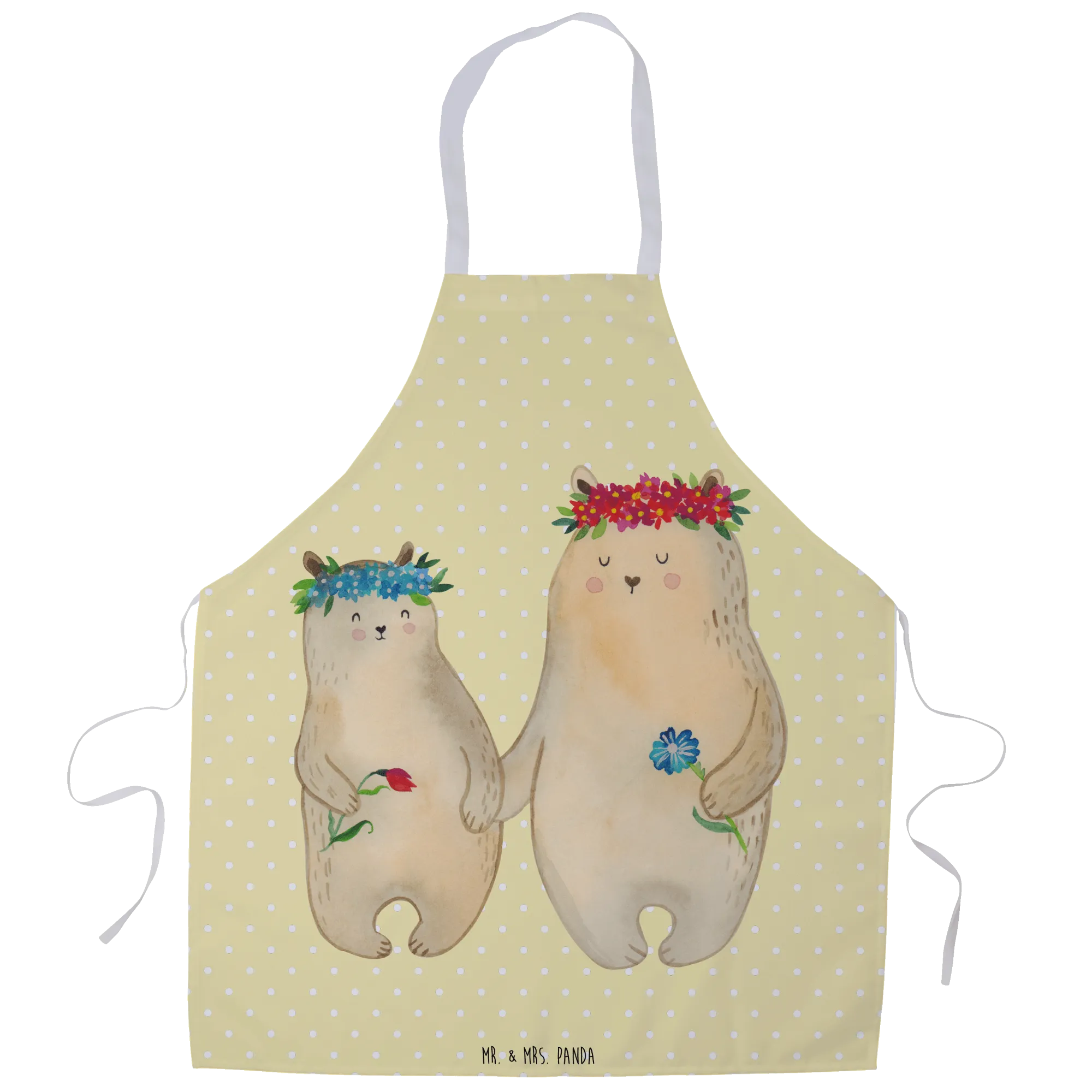 Discover the ultimate kitchen companion that speaks volumes about love and family! Introducing the beautiful cooking apron featuring two adorable bears adorned with flower crowns, designed exclusively by Mr. & Mrs. Panda. This apron is not just a practical accessory for your culinary adventures; it’s a heartfelt tribute to cherished moments spent cooking with your family.
