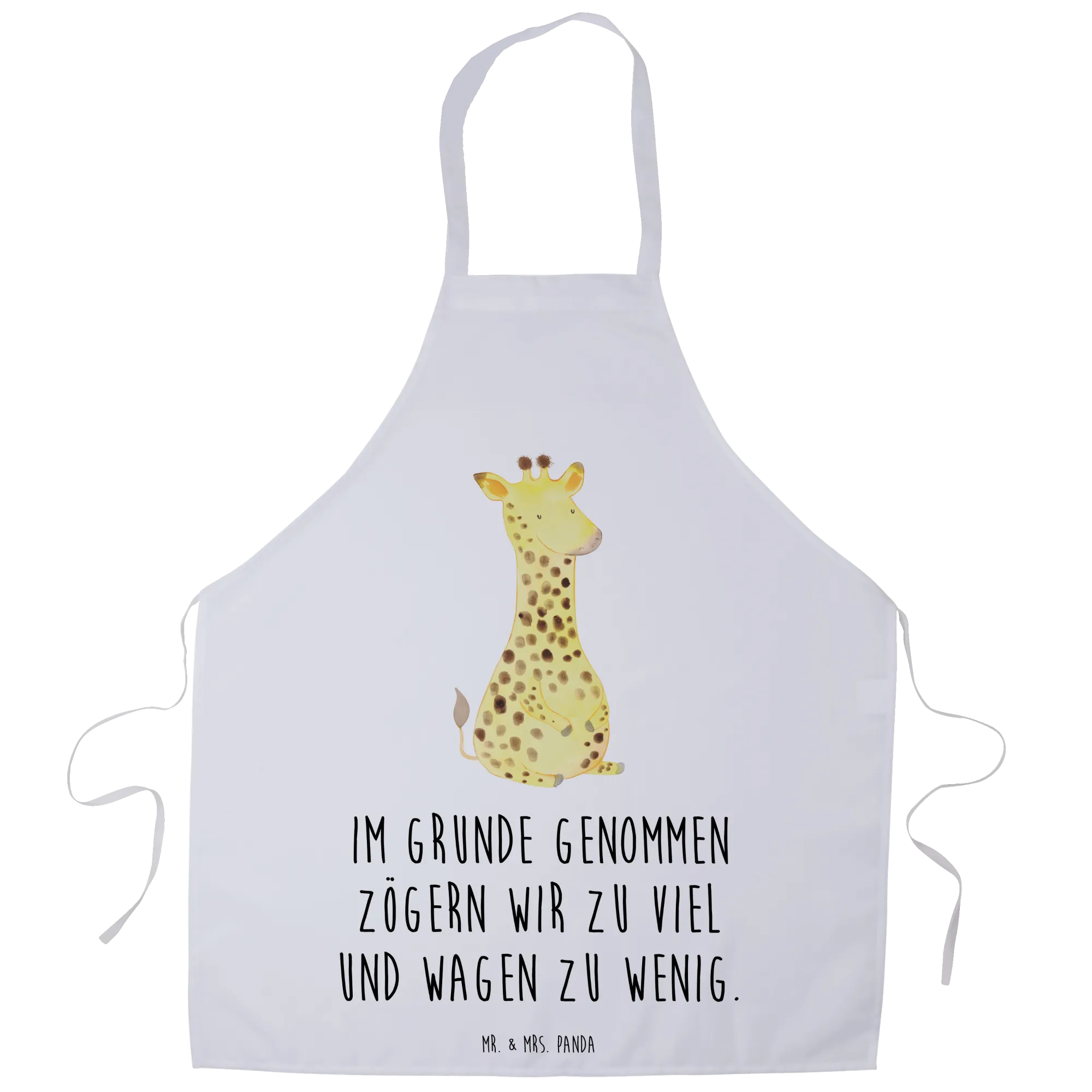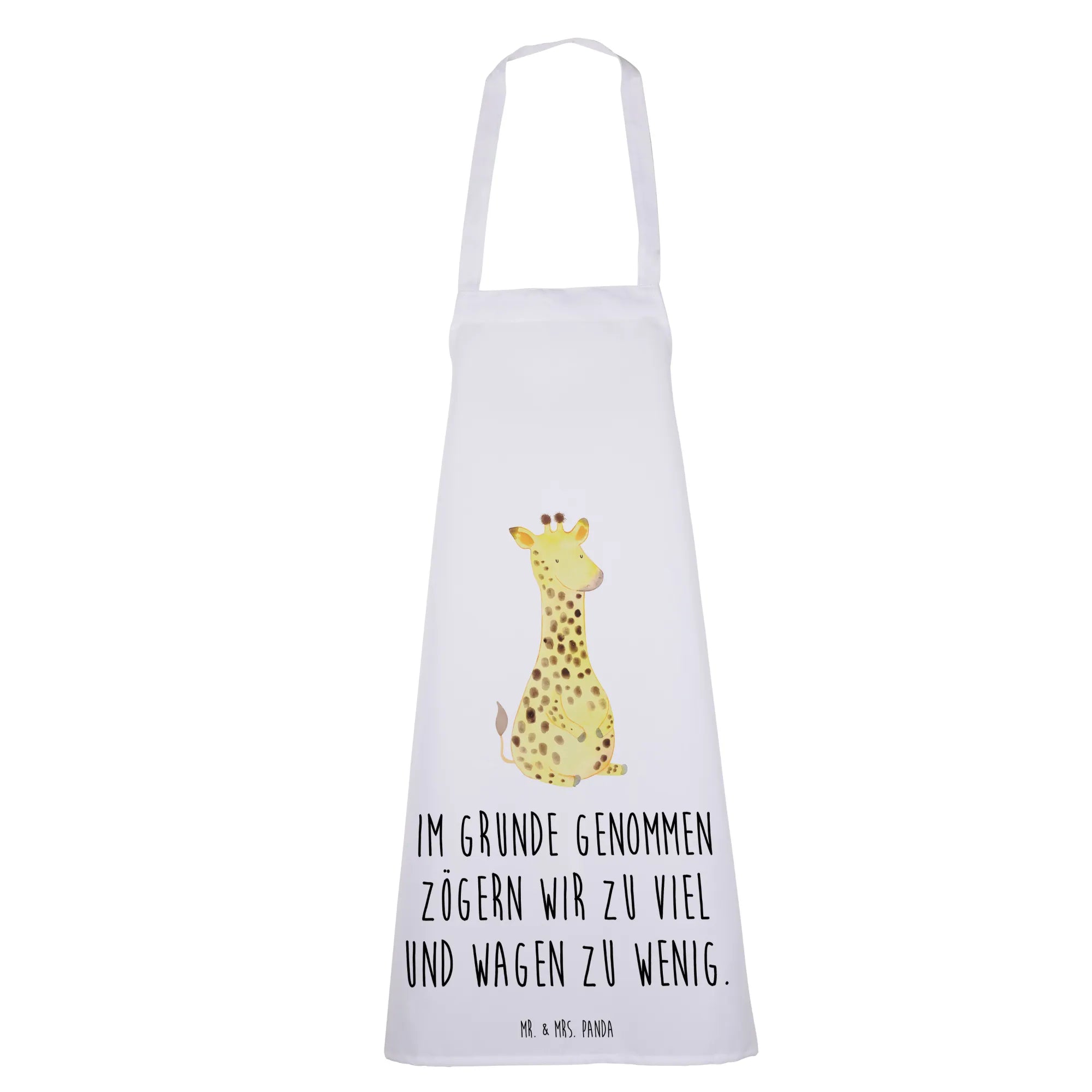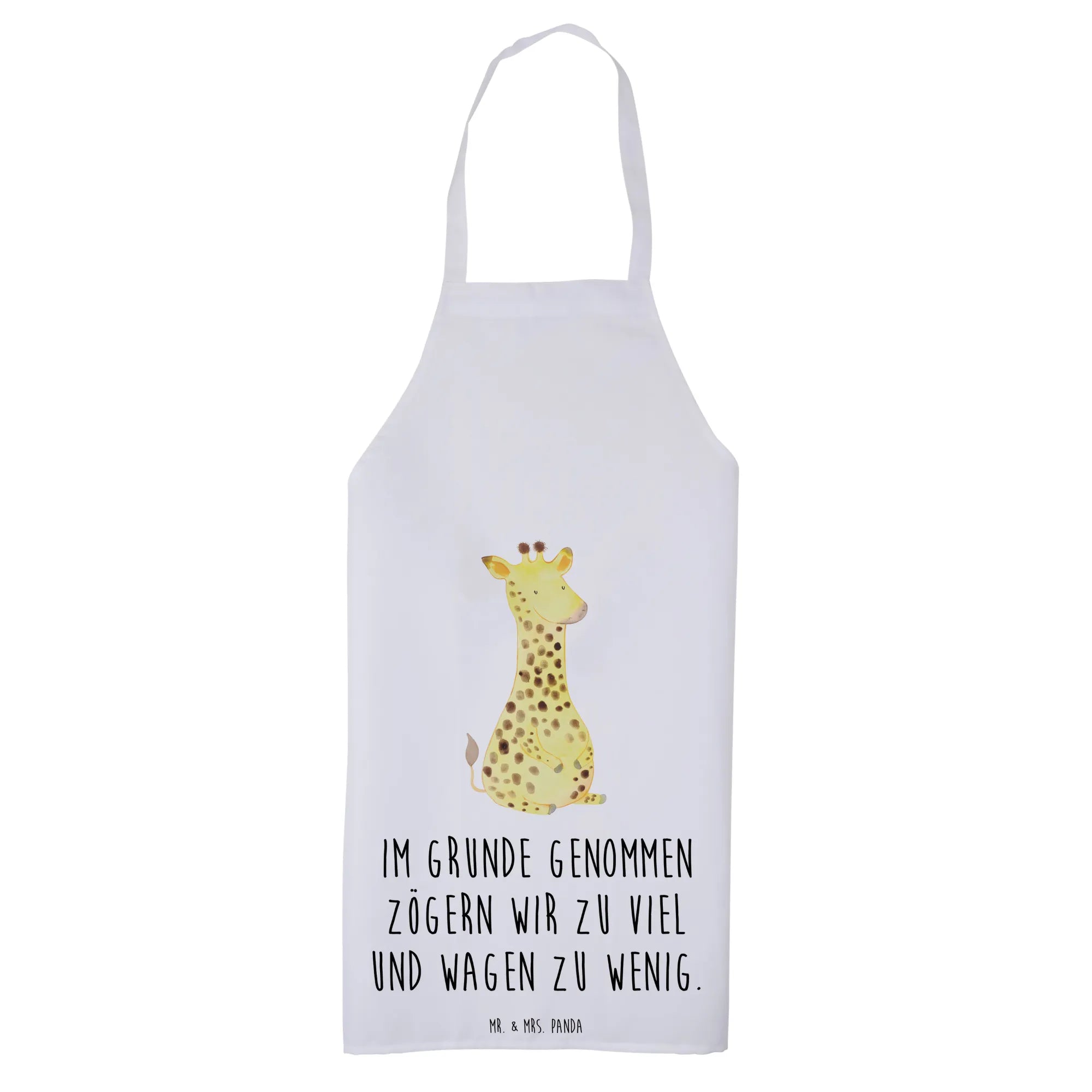 This cooking apron is ideal for a variety of occasions. Whether you're shopping for a birthday gift, a housewarming present, or simply want to treat yourself, the Giraffe Satisfied apron is a versatile choice. It also makes a lovely wedding gift or an addition to any culinary enthusiast’s kitchenware. The heartfelt message on the apron, “Im Grunde genommen zögern wir zu viel und wagen zu wenig,” serves as a gentle reminder to embrace adventure in the kitchen and life, making it a thoughtful gift for anyone!