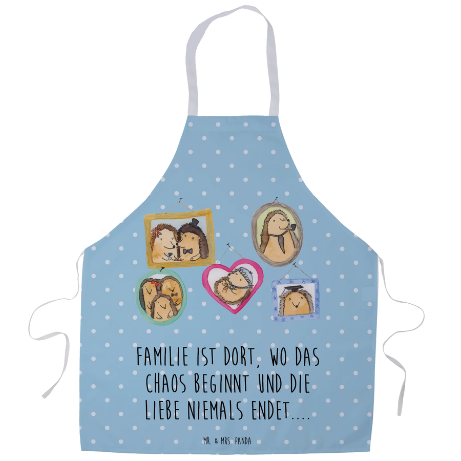 Apron Hedgehog family - with saying - Blue Pastel