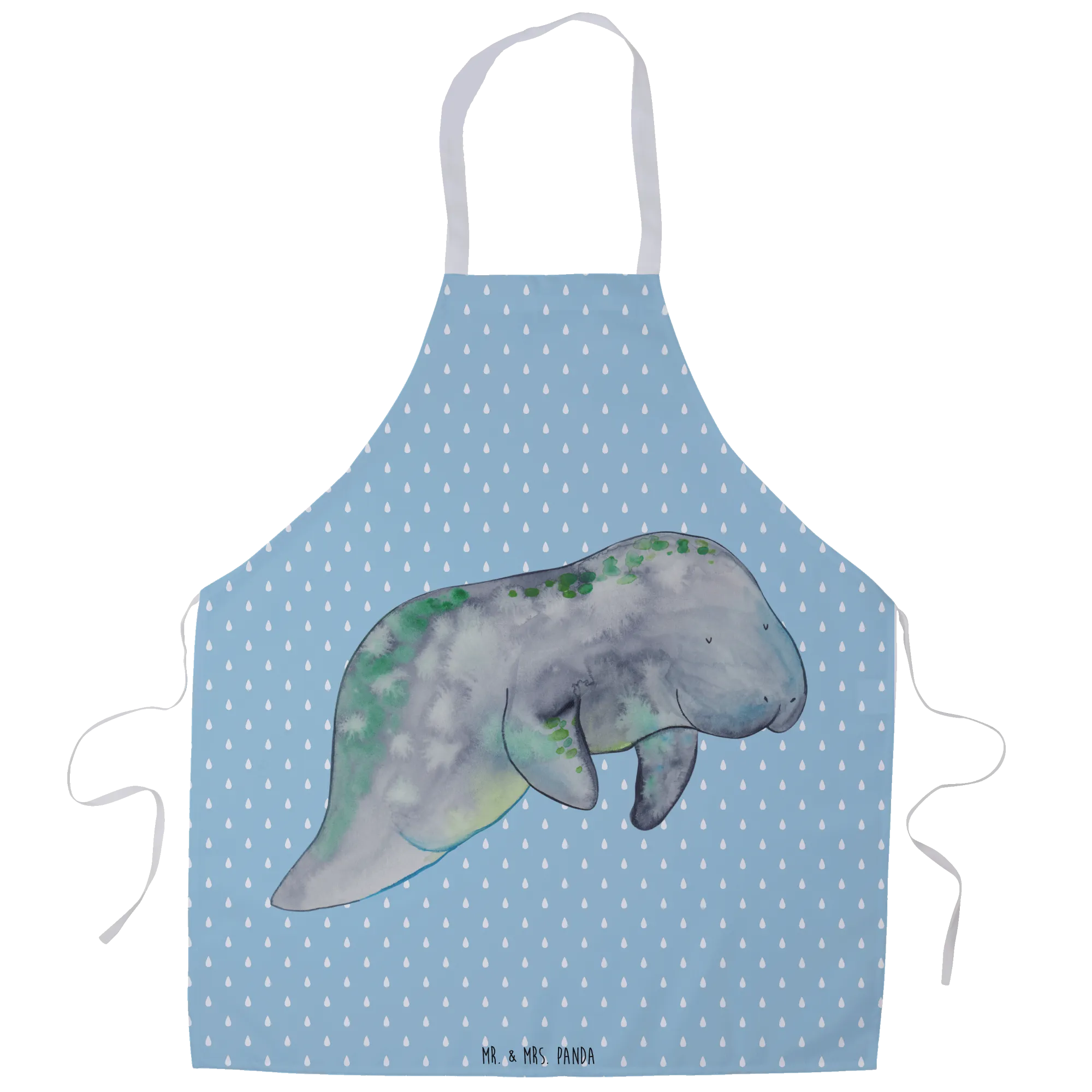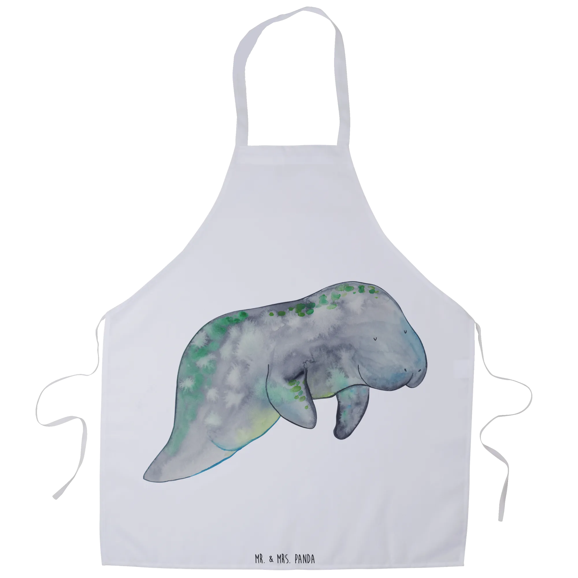 Looking for the perfect gift for the seafood lover in your life? Say hello to the Mr. & Mrs. Panda Manatee Chilling Apron! This lovely cooking apron is not just a practical kitchen accessory; it’s a delightful expression of personality wrapped in a charming design. Featuring an adorable illustration of a relaxed manatee, this apron radiates positivity and cosiness, encapsulating the spirit of laid-back enjoyment. The hand-painted watercolor effect in soothing blue and green tones creates a serene atmosphere that any home chef would appreciate.