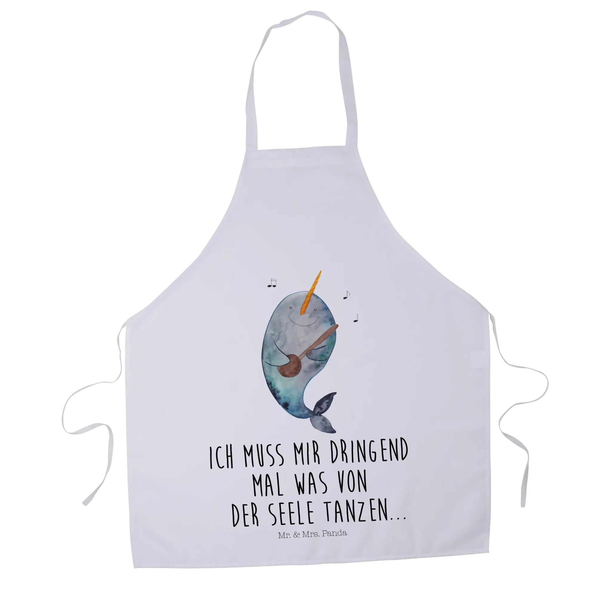 Whether you're flipping burgers on the grill, baking a cake, or preparing a seafood feast for friends and family, the Narwhal Guitar Apron becomes your reliable kitchen ally. And with a large front pocket cleverly designed into it, you’ll have plenty of room to store utensils, recipe cards, or even your most-loved grilling tools. The cute design features a happy narwhal strumming a guitar, surrounded by lively musical notes, creating an atmosphere that's perfect for expressing creativity and reducing stress. The slogan "Ich muss mir dringend mal was von der Seele tanzen" reminds us all that cooking and baking can be an art form that lifts our spirits and soothes the soul.