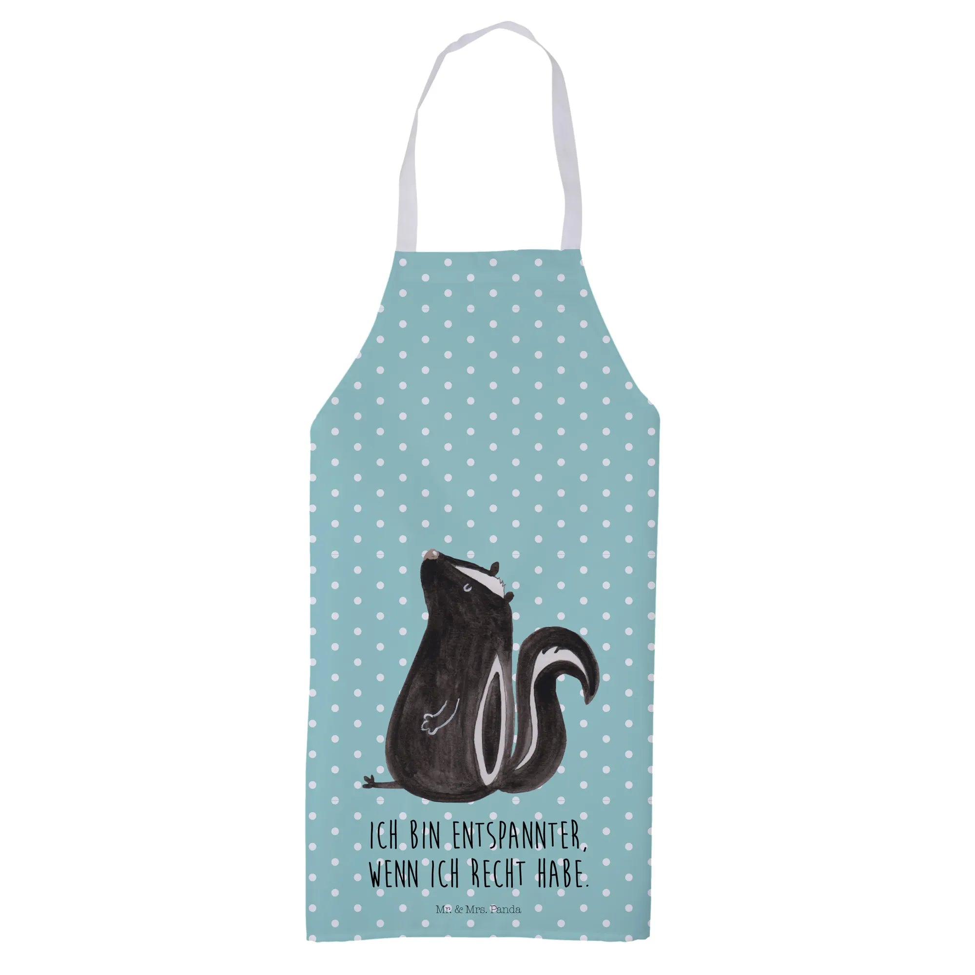 Introducing the delightful Mr. & Mrs. Panda Skunk Sitting Apron, perfect for those who love to cook in style! This charming kitchen companion features a beautifully designed skunk motif, capturing the spirit of this adorable creature. Measuring 950 mm x 700 mm, this apron not only looks great but also provides ample coverage to keep your clothes safe from spills and splatters.