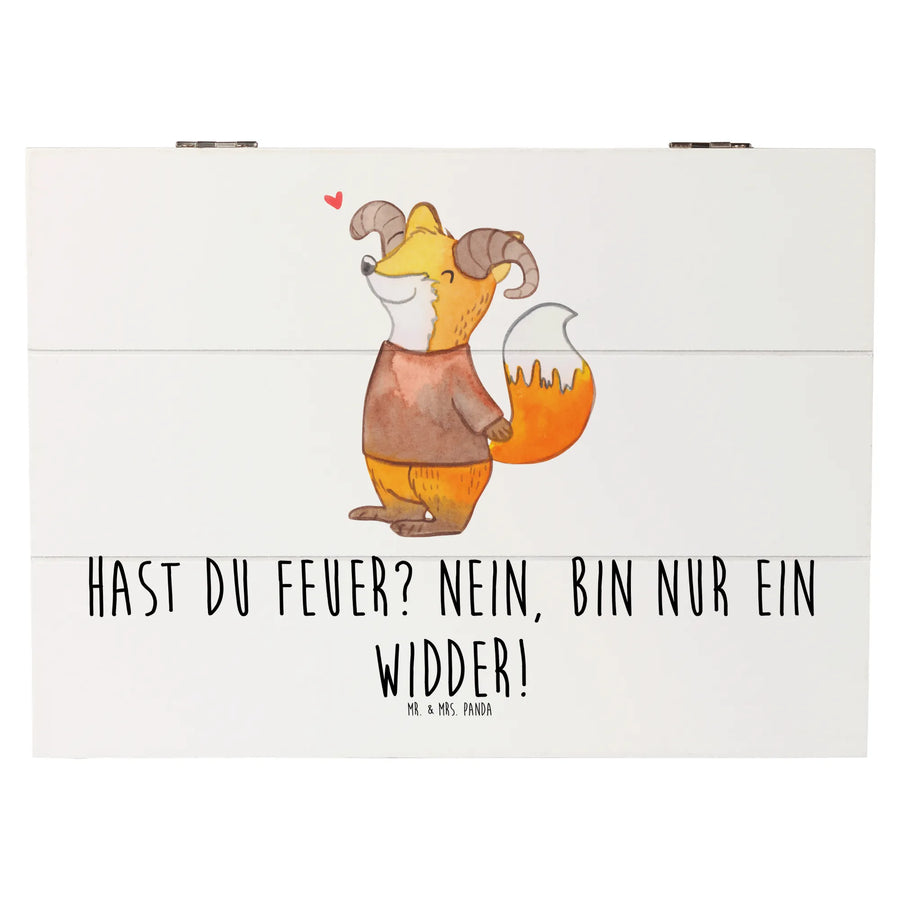 Wooden chest Hast du Feuer? Nein, bin nur ein Widder! - 25 x 18 cm - White