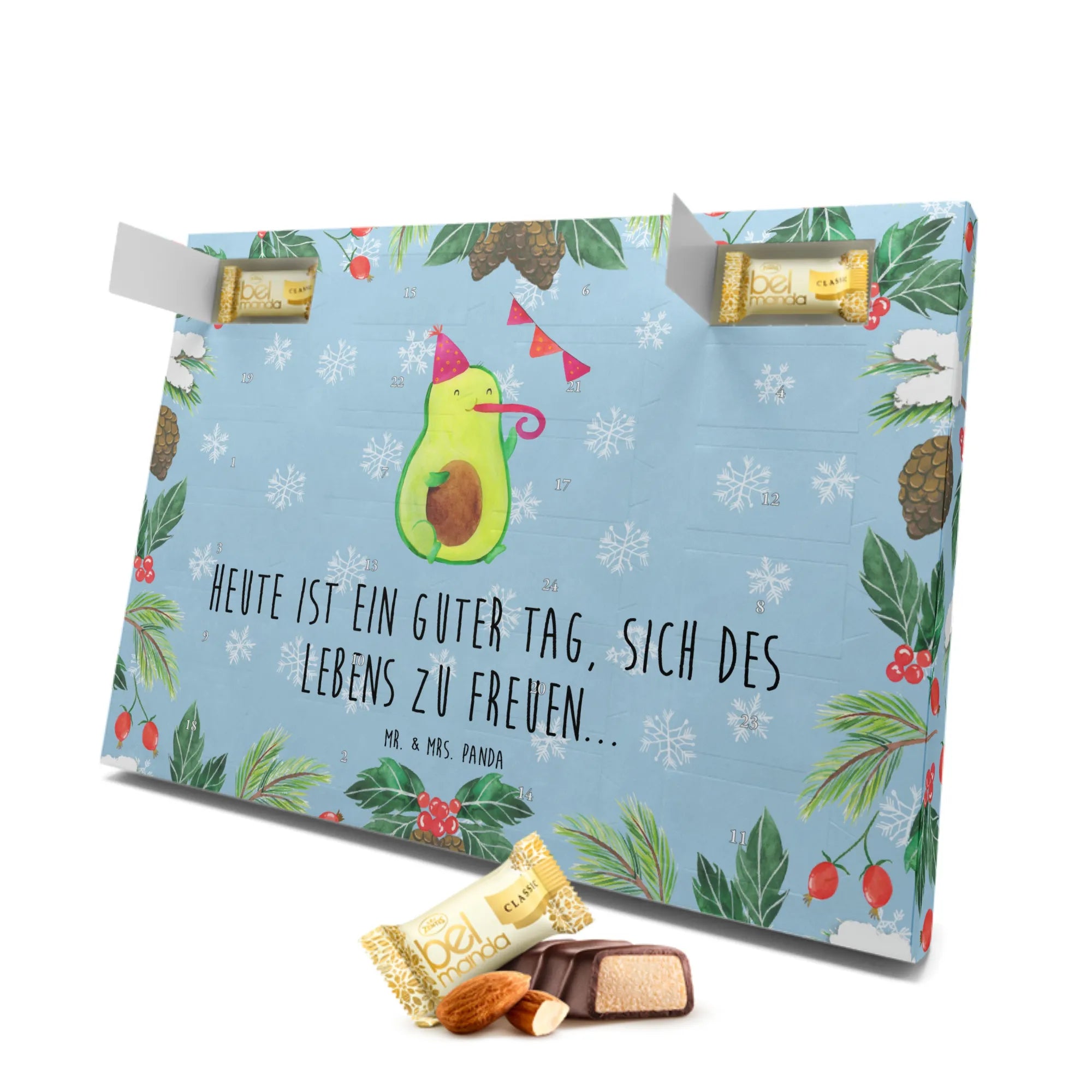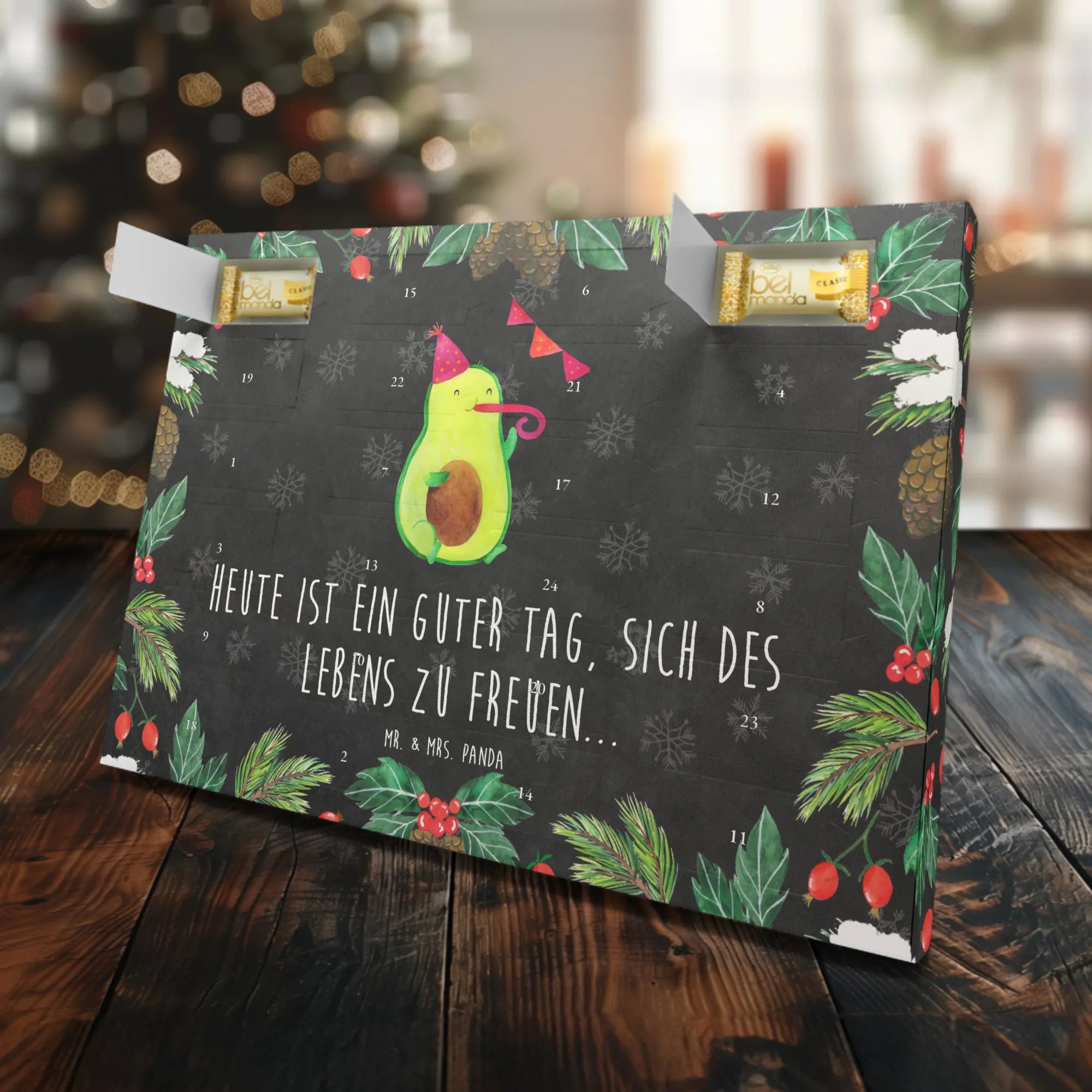 Der Adventskalender ist mit einem sympathischen Avocado-Motiv bedruckt, das von Mrs. Panda handgezeichnet wurde. Die süße Avocado mit dem Partyhut und der Partypfeife sorgt für einen fröhlichen Blickfang und lässt die Herzen aller Feierei- und Geburtstag-Fans höher schlagen!
