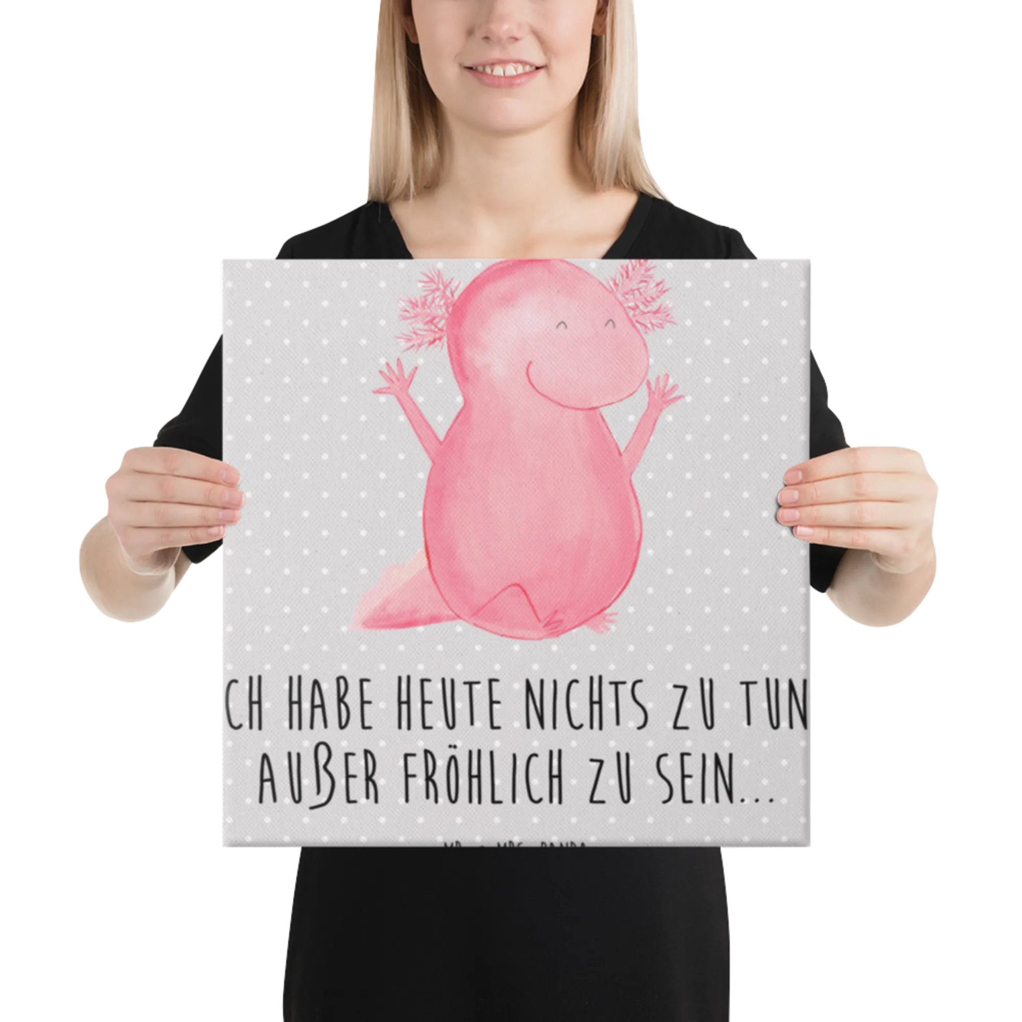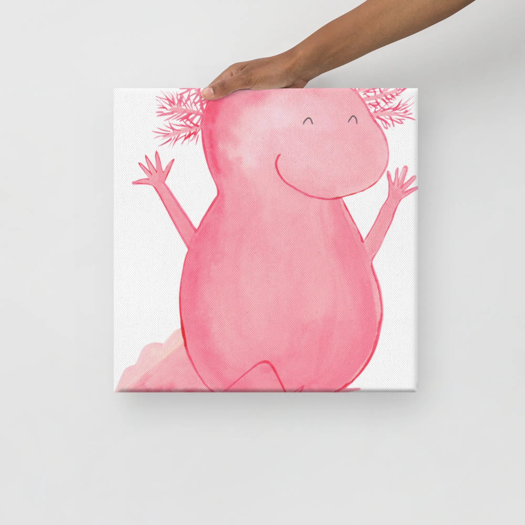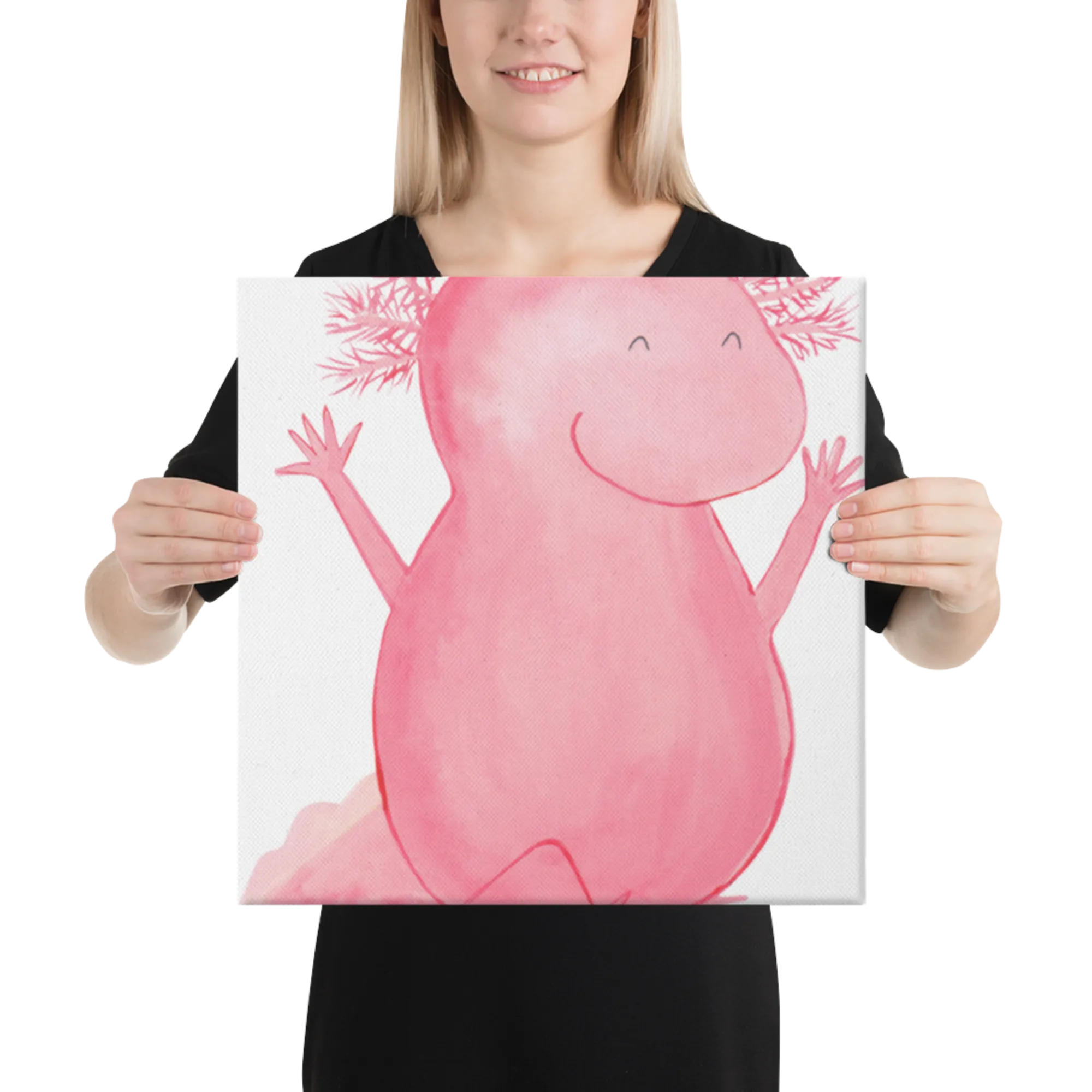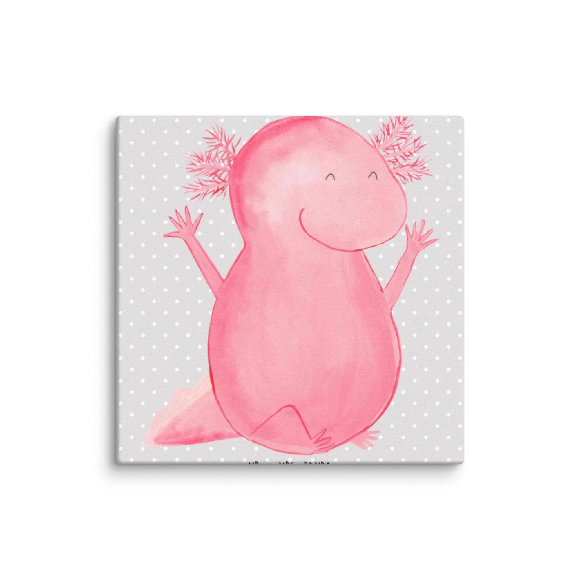 Canvas picture axolotl Hooray - 40 x 40 cm - with saying - Pastel Gray