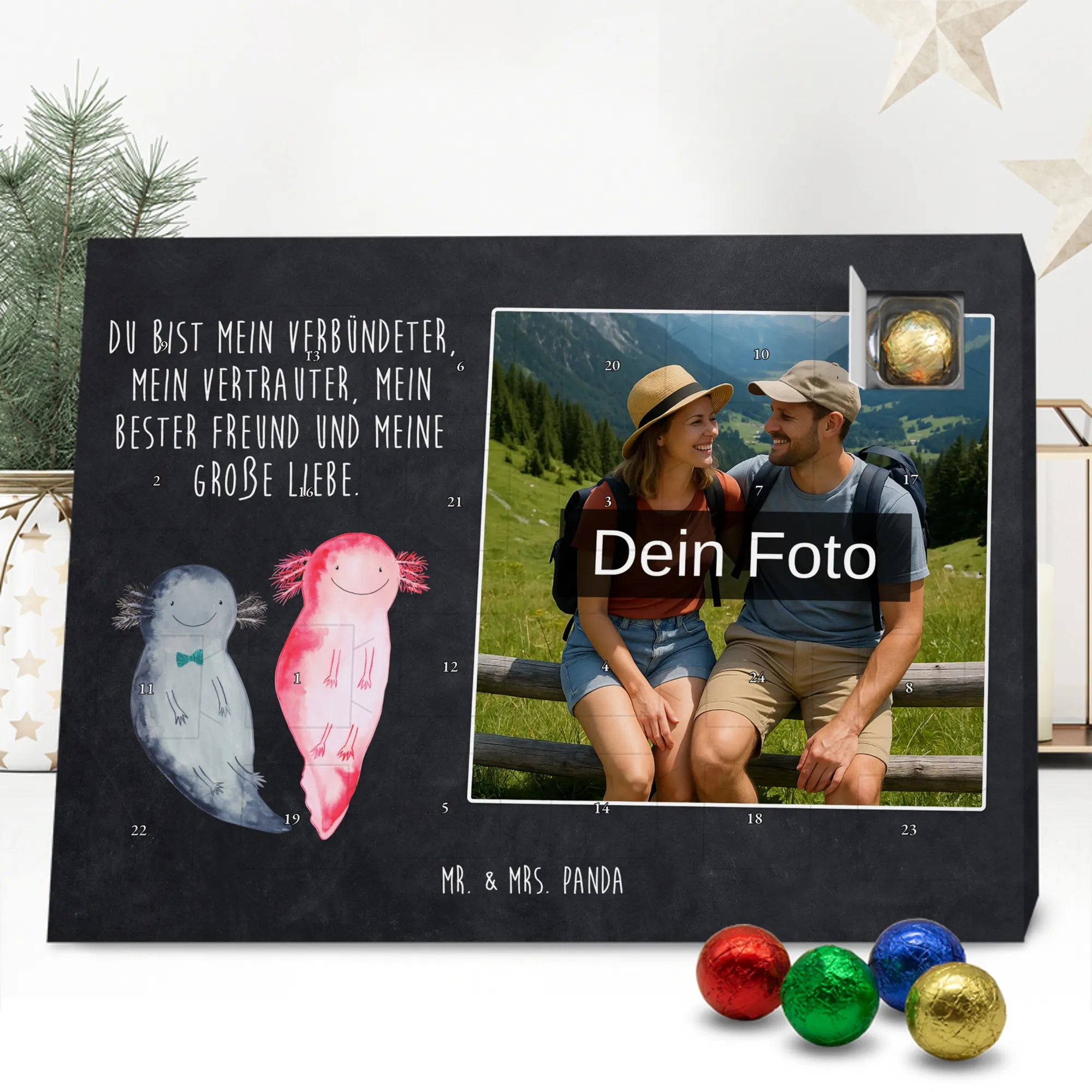 🐼 PERSONALISIERTER KALENDER: Dein Foto-Adventskalender mit 24 Schokoladentäfelchen und Mr. & Mrs. Panda Motiven.