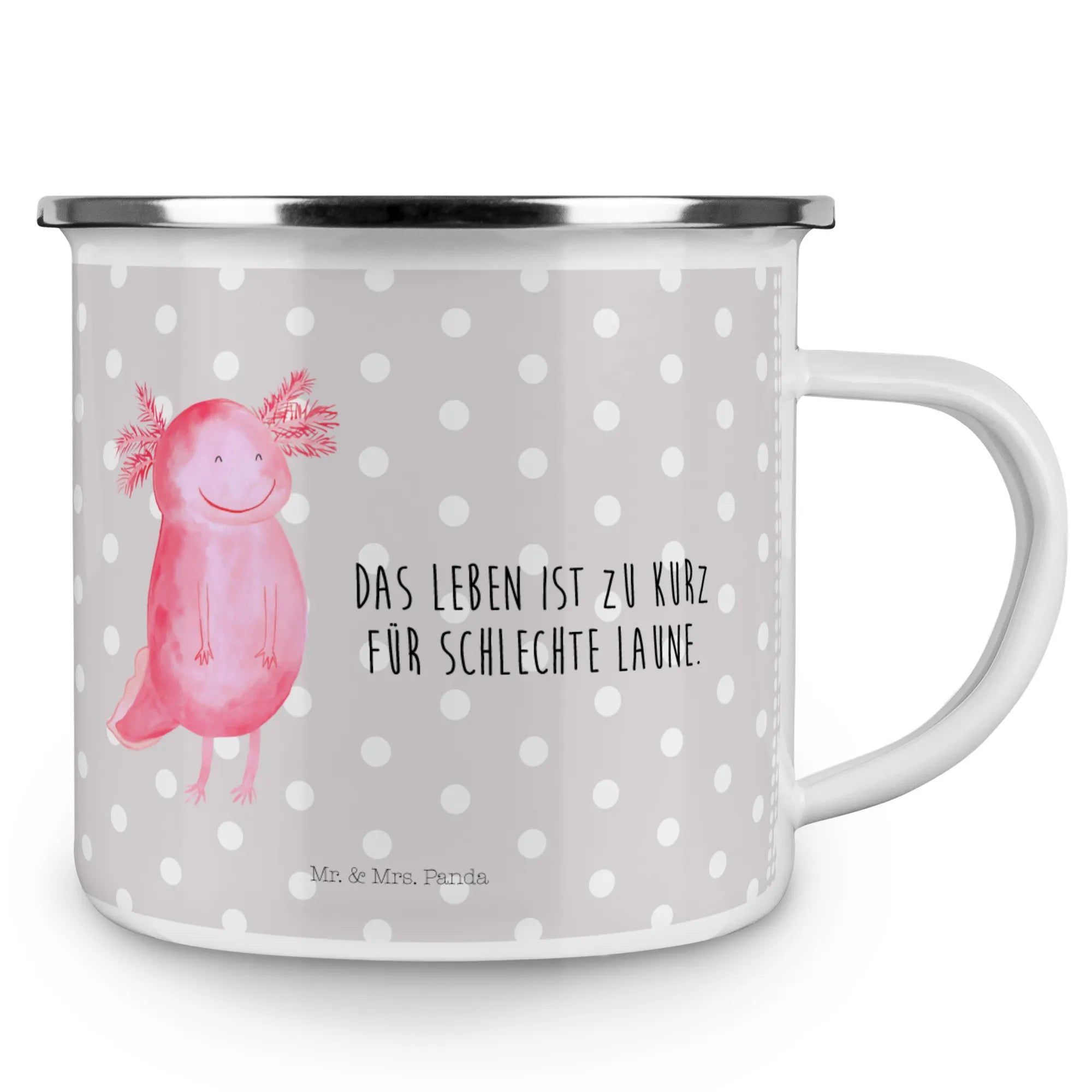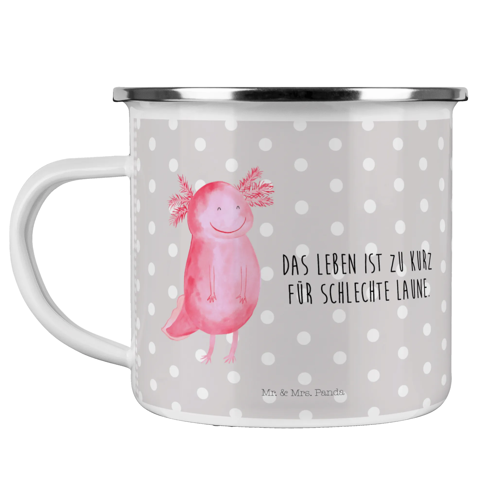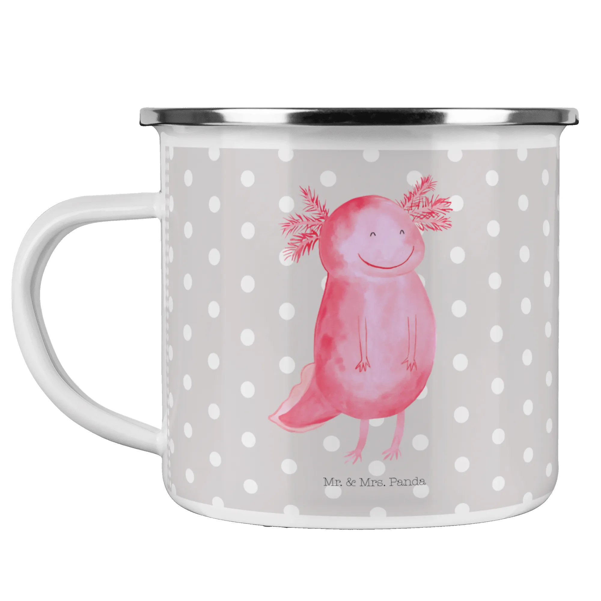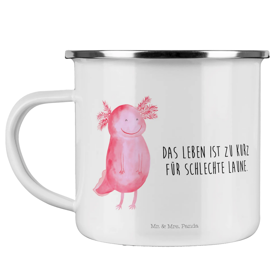 The enchanting design features an adorable axolotl, a unique amphibian known for its cheerful demeanor, hand-drawn with love by Mrs. Panda herself. Isn’t this little guy just irresistible? Whether you’re sipping your favorite bushcraft brew by the campfire or keeping the good vibes alive on a chilly morning hike, this enamel camping mug is designed to bring a smile to your face.