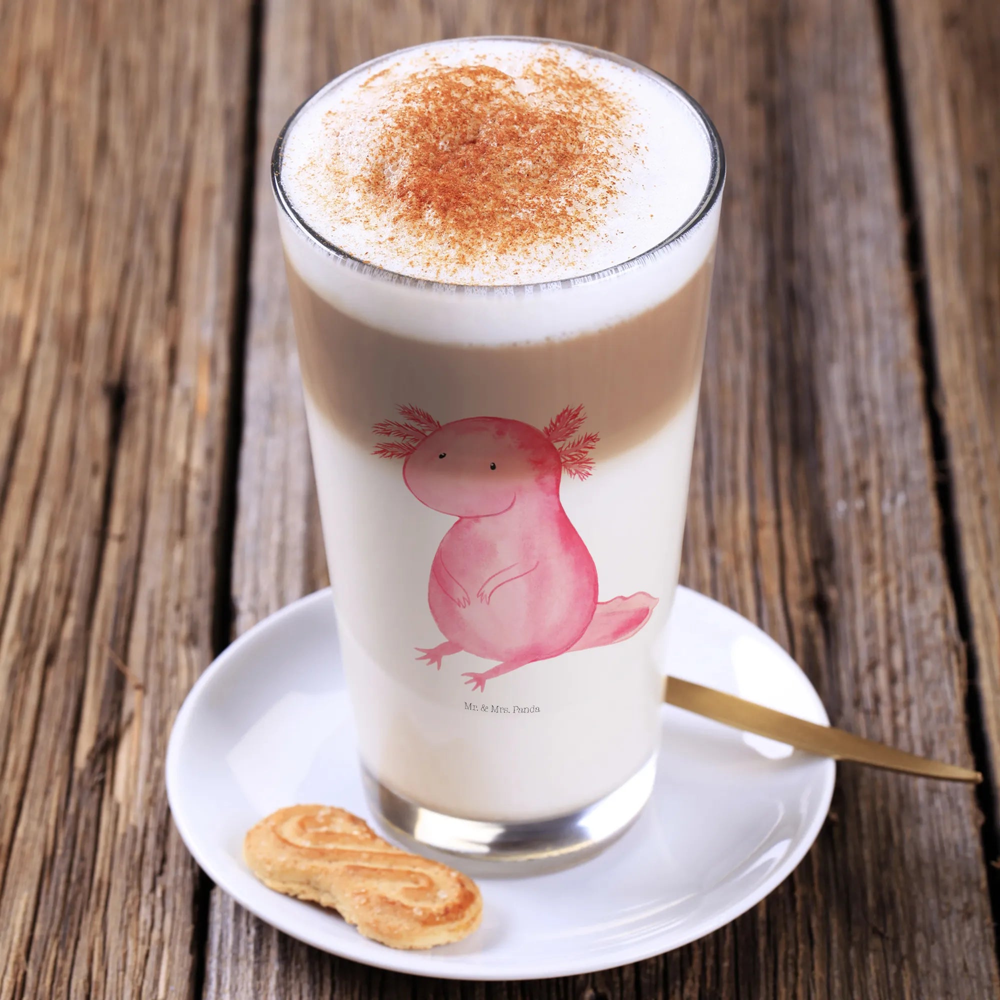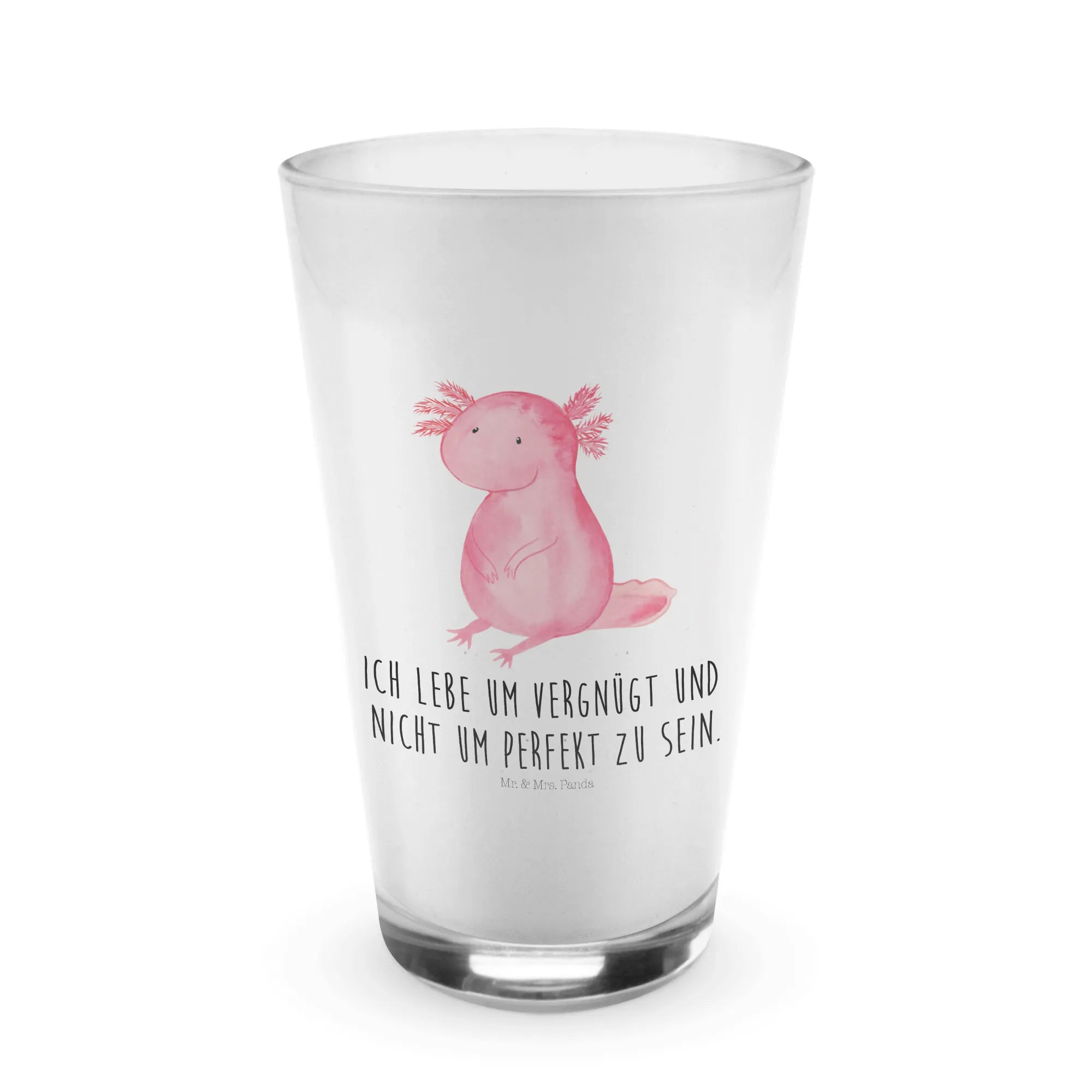 Imagine sipping your perfect cappuccino from a glass that not only serves your drink but also tells a story of joy and whimsy! The Mr. & Mrs. Panda Axolotl Glass is not just a beautiful drinking vessel; it’s an experience of happiness in every sip. This premium glass is designed with the enchanting image of the cheerful Axolotl, a delightful creature known for its carefree and contented demeanor. Whether you're enjoying a rich latte macchiato or a refreshing long drink, this glass adds a touch of aquatic charm to your day. Perfect for marine enthusiasts or anyone looking to brighten their coffee break, this item makes a great gift for your girlfriend or a special friend.