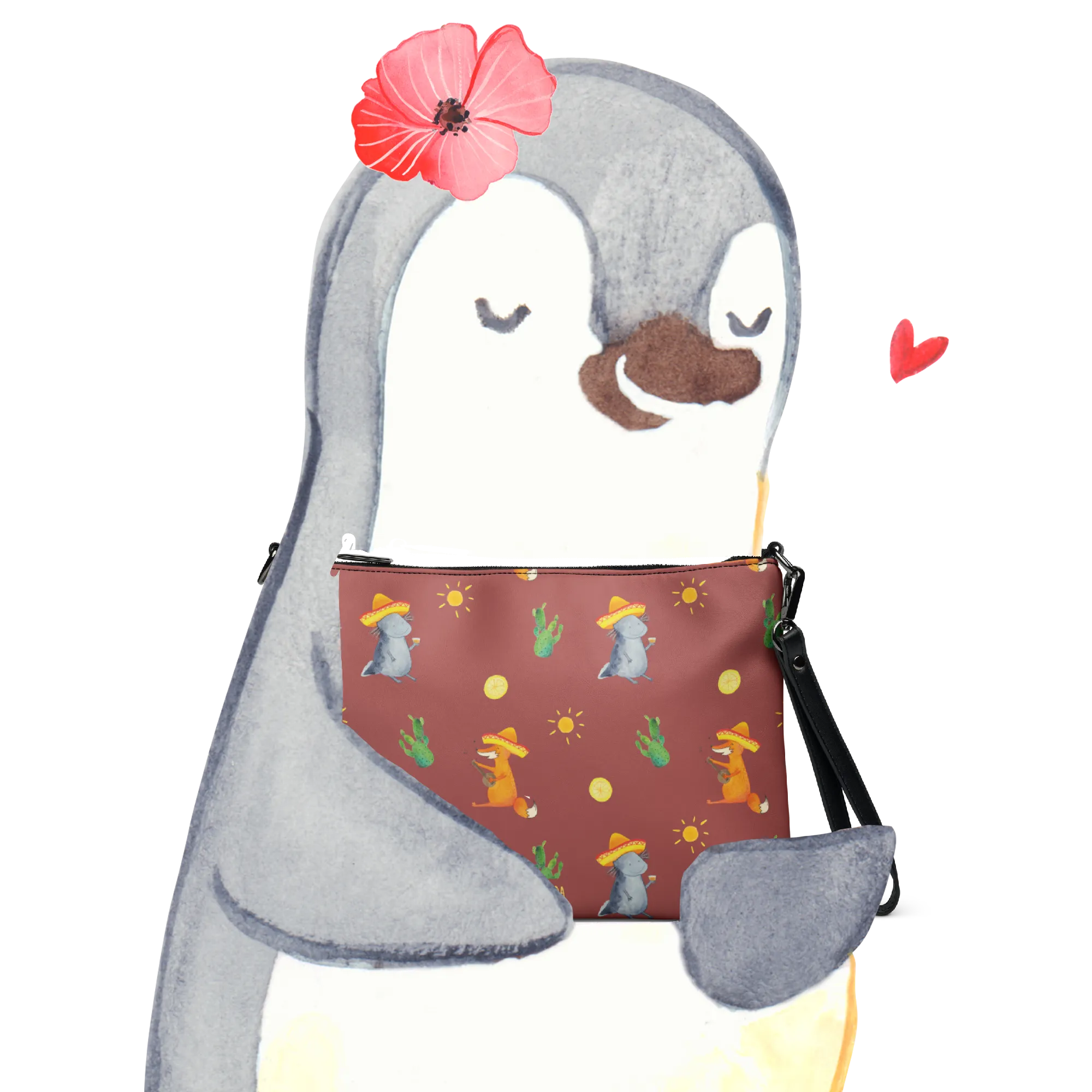 This whimsical handbag features an adorable Axolotl, a cute amphibian known as the Mexican walking fish, wearing a charming sombrero and holding a glass of tequila. It’s not just a stylish accessory; it's a statement of personality! This unique design speaks to those who appreciate quirky fashion, marine life, or simply love a good laugh.