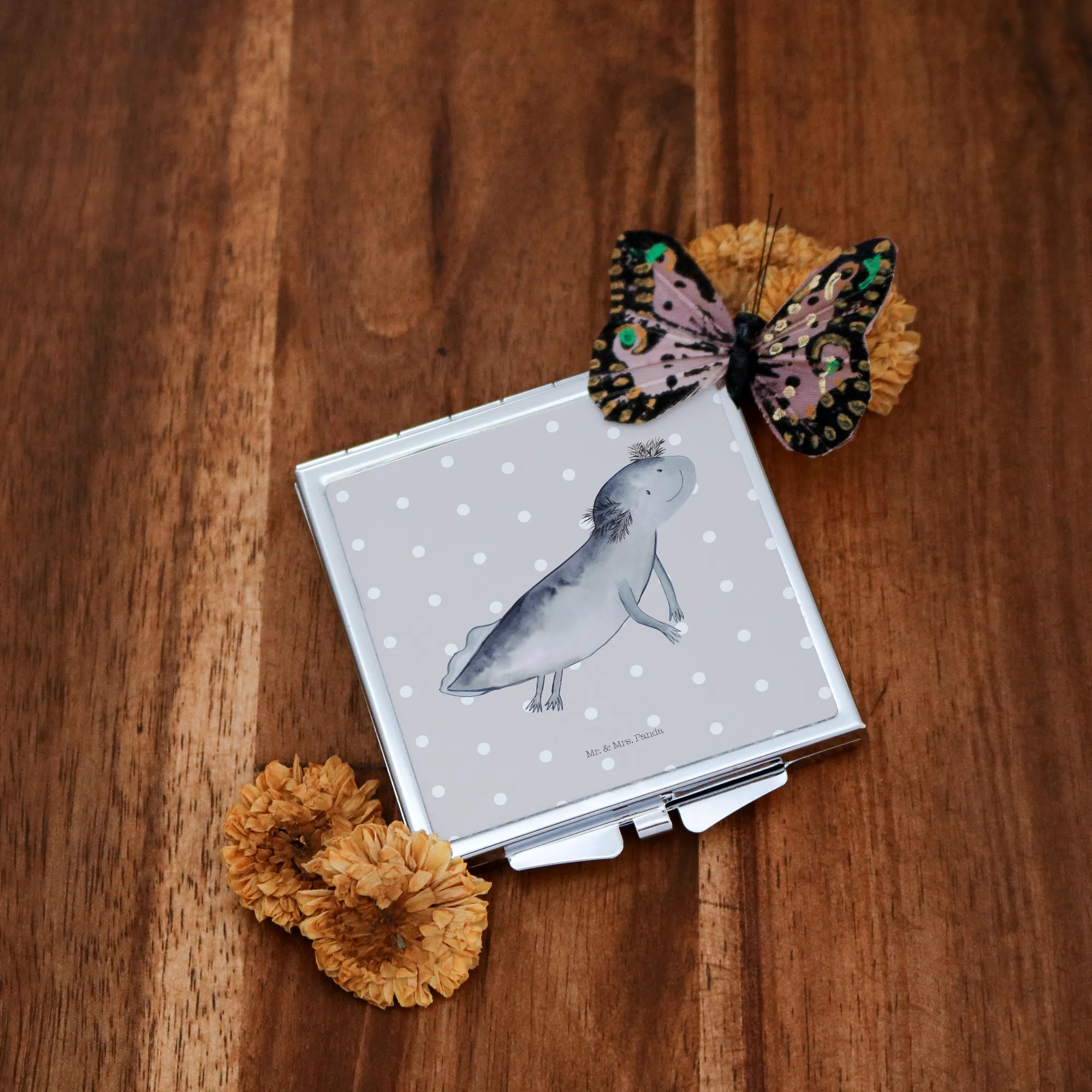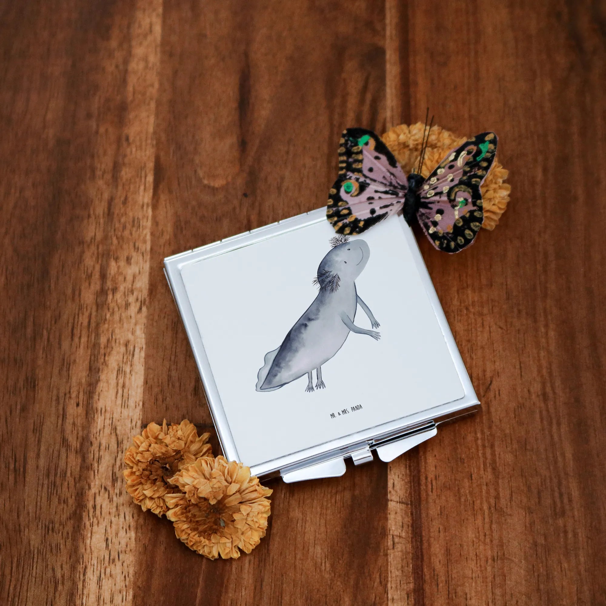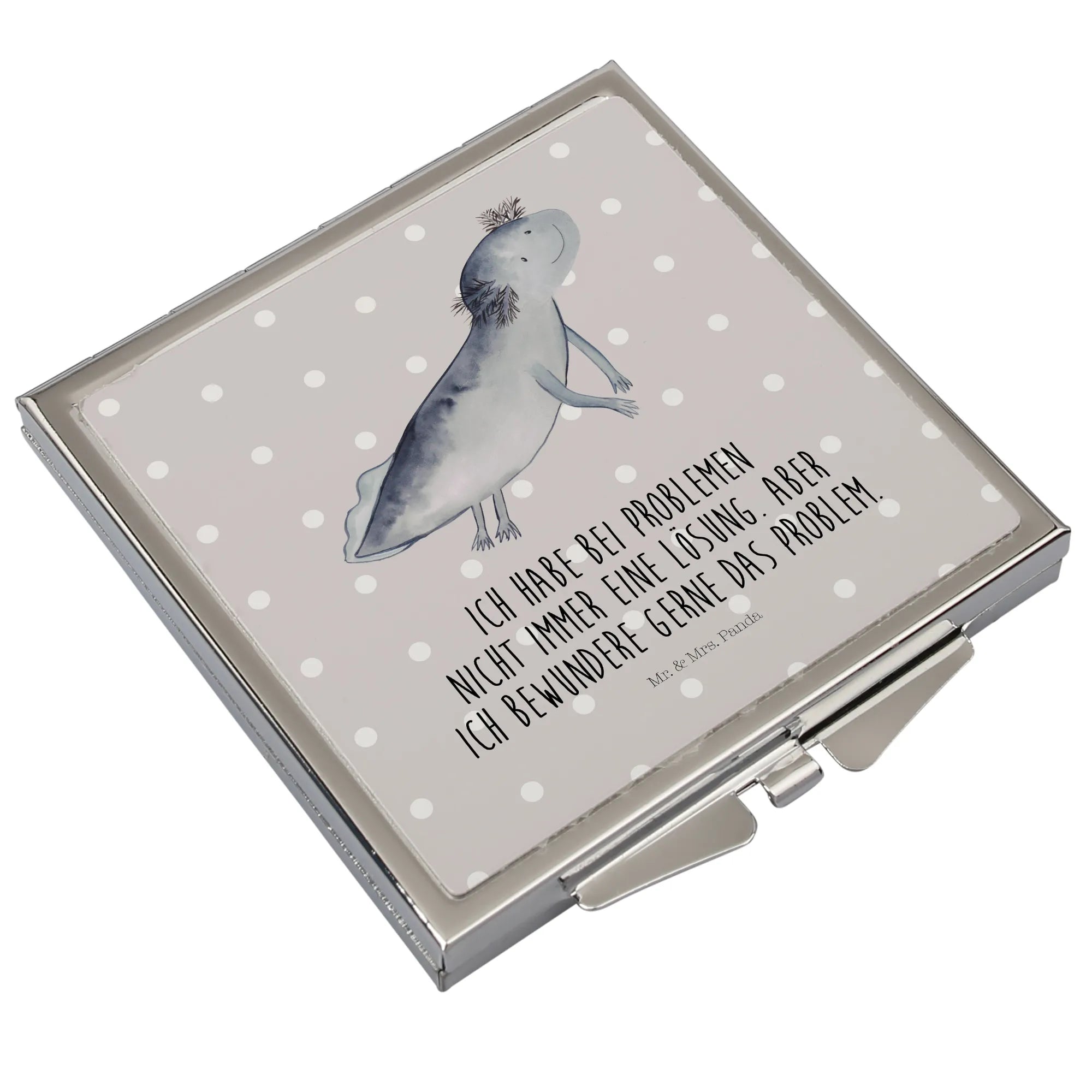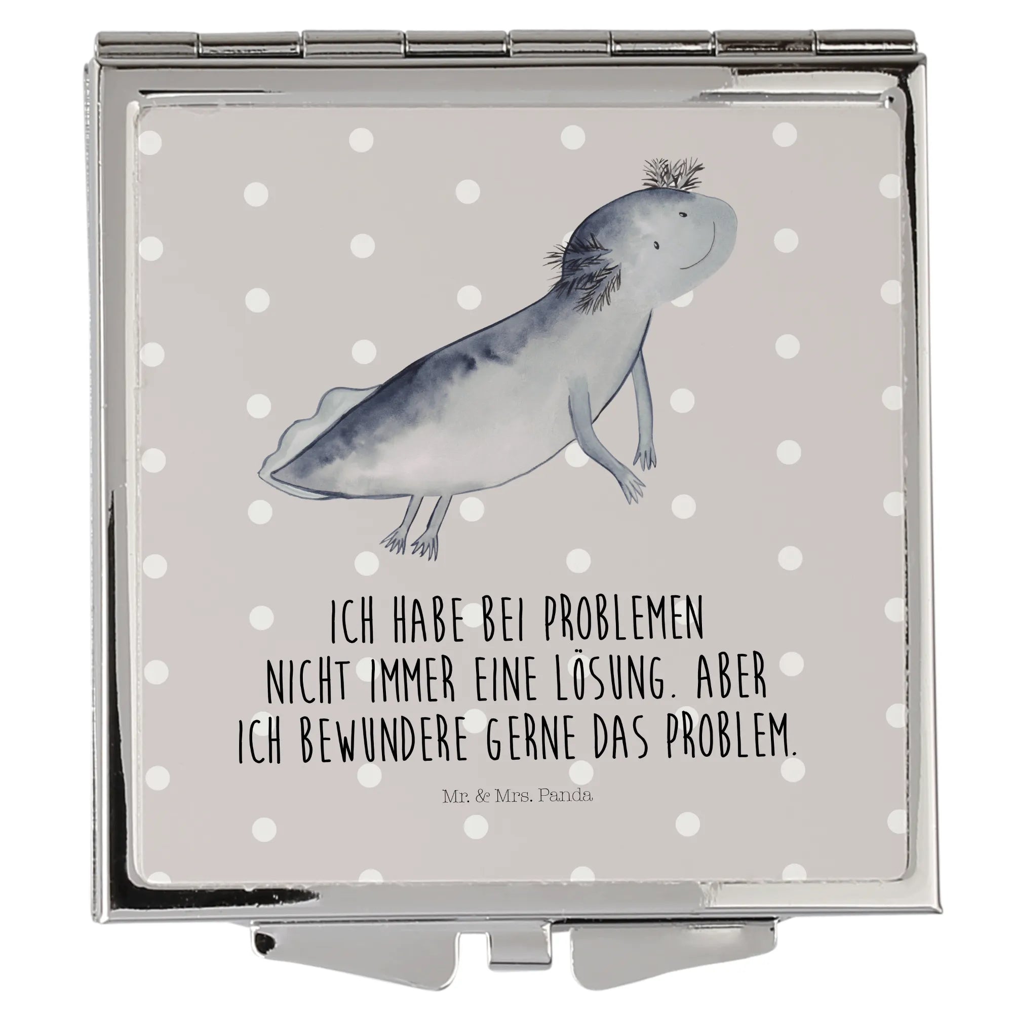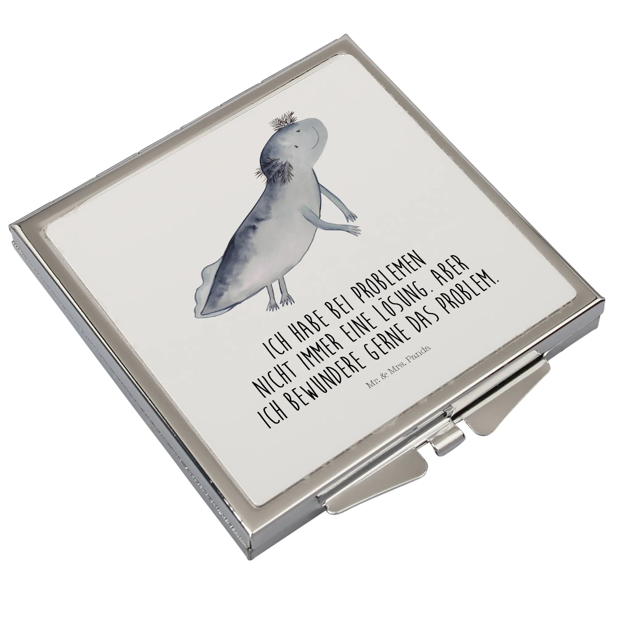 Handbag mirror axolotl To swim - with a saying - White