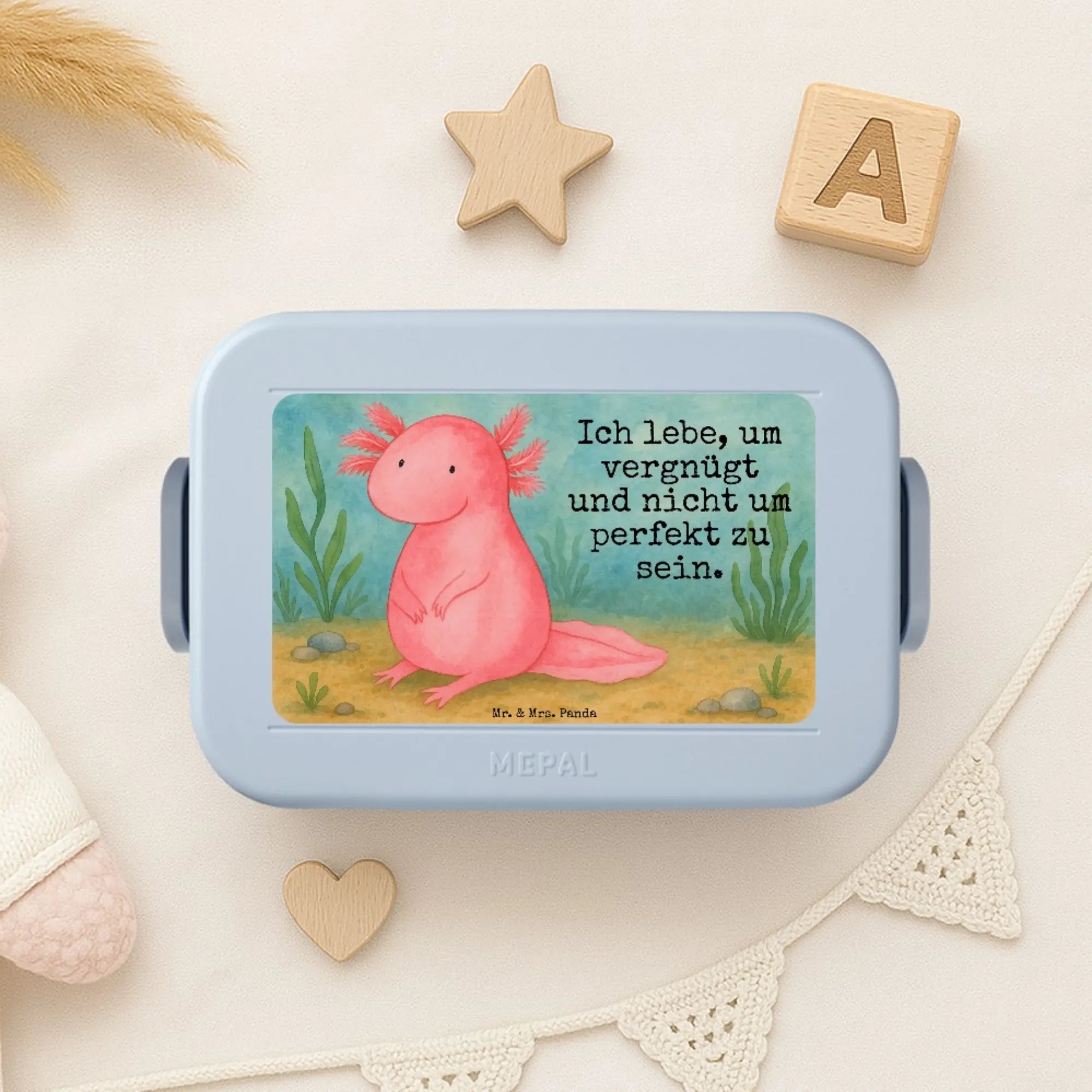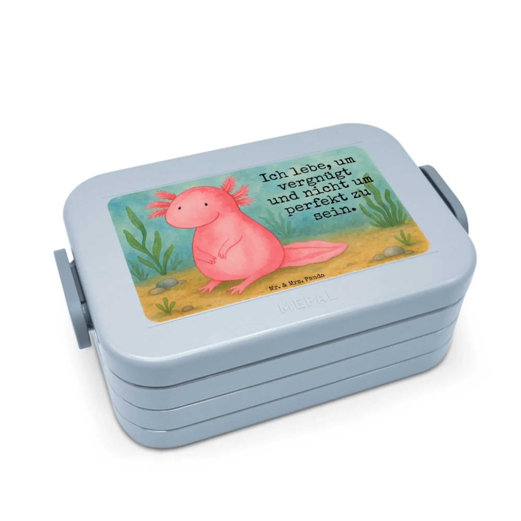MEPAL Bentobox Axolotl Niedlich Design - mit Spruch - Blau Pastell